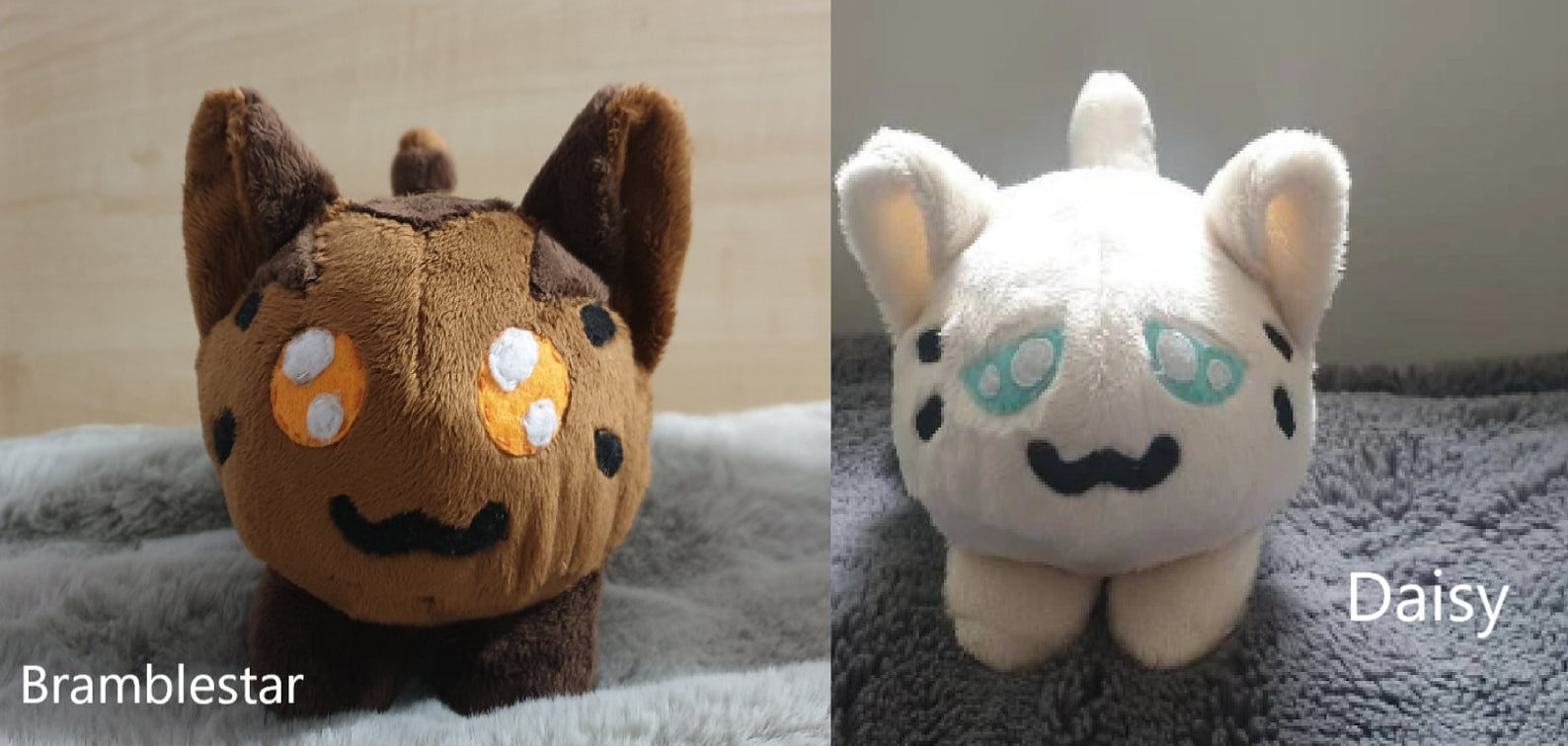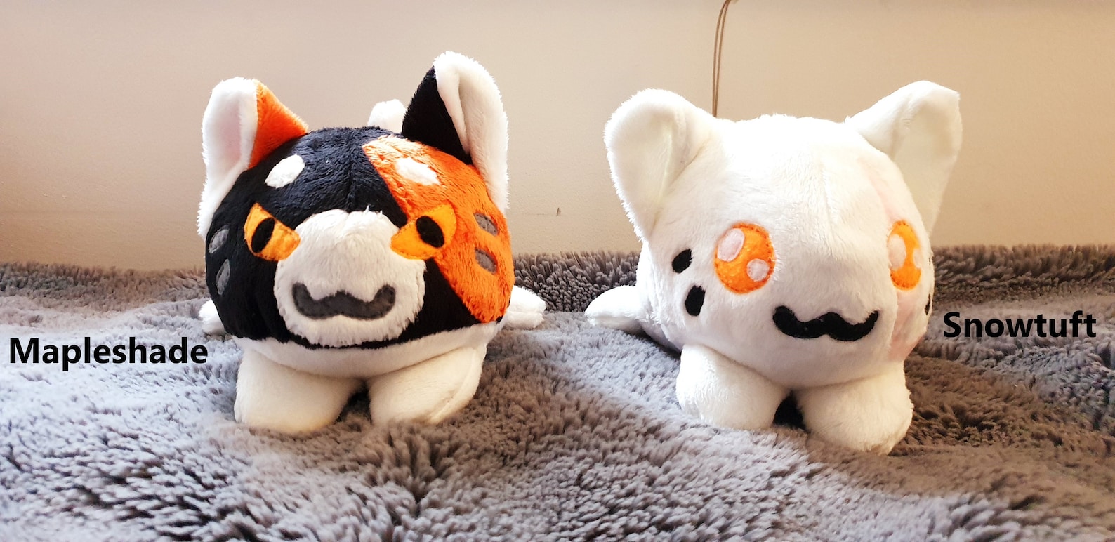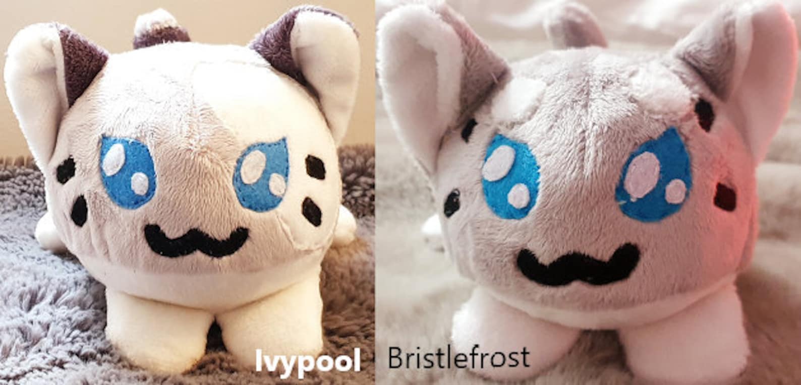 Warrior cats inspired beanie plushies! (Customs available!) Made from super soft Minky fabric, Polyfiber stuffing and polyfill beans. This is a hand crafted item and so each plush will be completely unique. They're all roughly 6 inches long 4.5 inches wide and 4 inches tall (not including the ears).