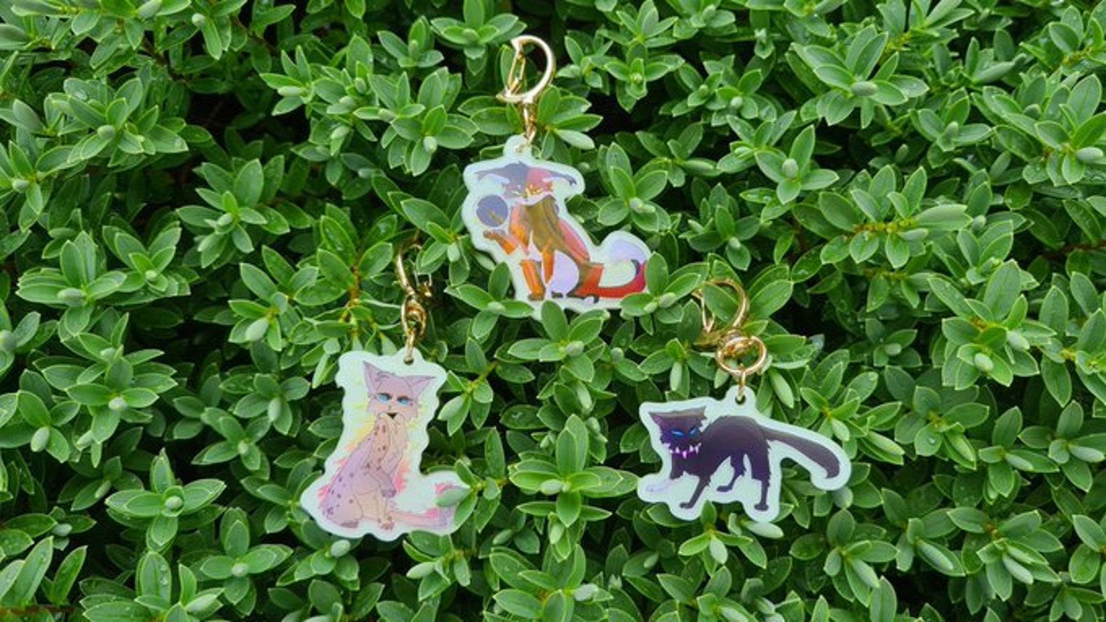 Introducing Warrior cats VILLAINS keychains! These are 2" keychains made with Acrylic Glow in the dark epoxy! They glow when charged up in the sun! Clip to your bags, keys, or on to lanyards the choice is yours! Choose from Ashfur, Scourge or Sol!