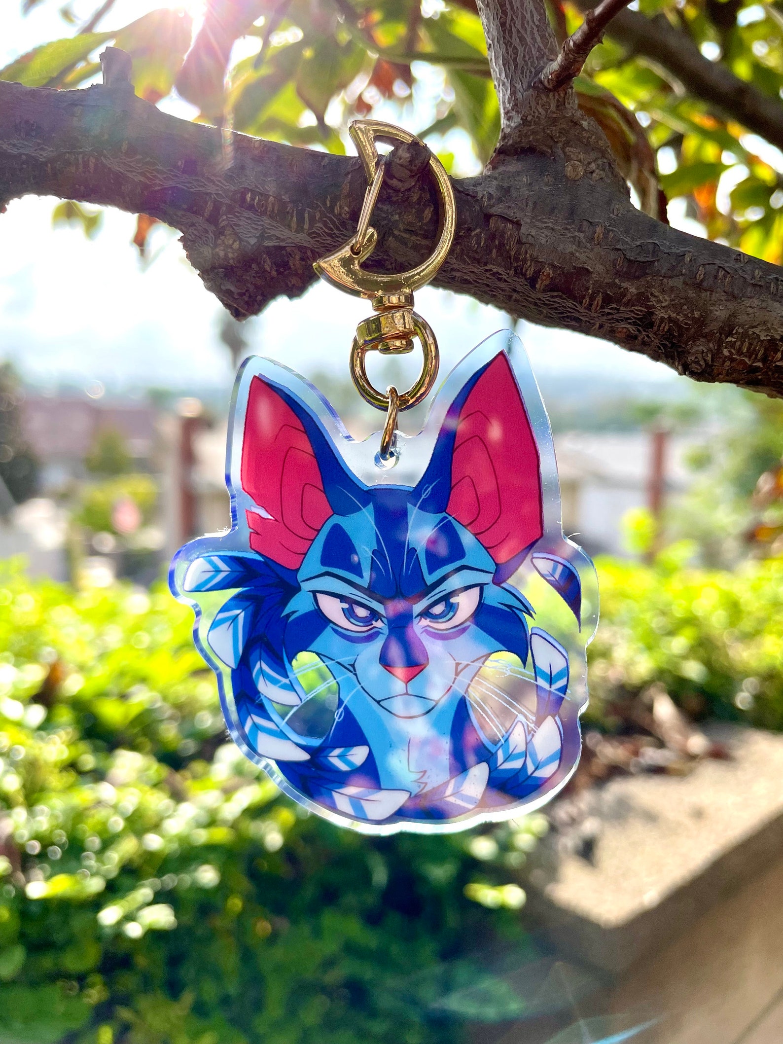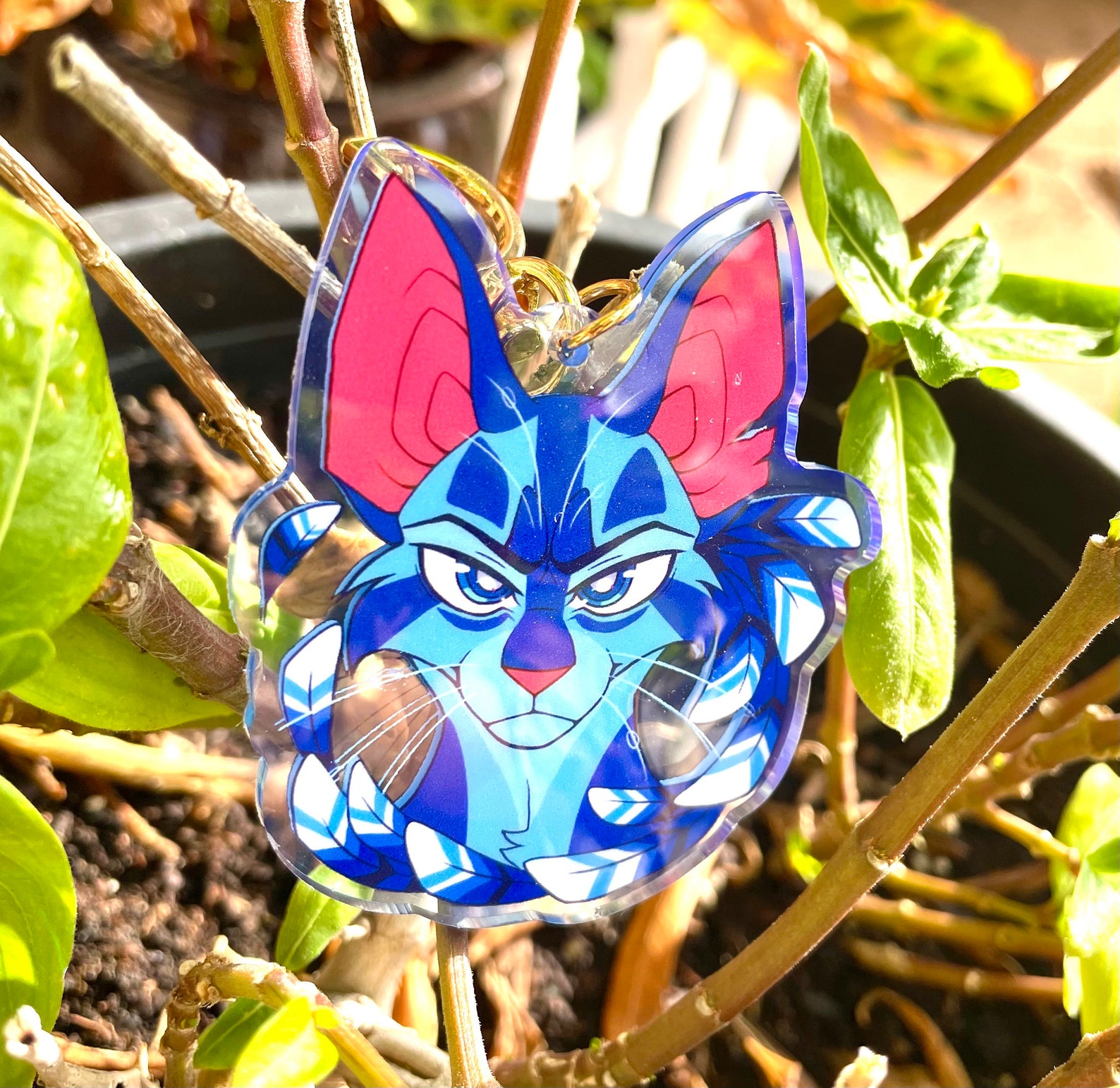 The drawing of the keychain was digitally designed and drawn by me! This keychain is of the infamous, cranky cat Jayfeather from the Warriors series! A magical looking keychain of a magical cat? Perfect!