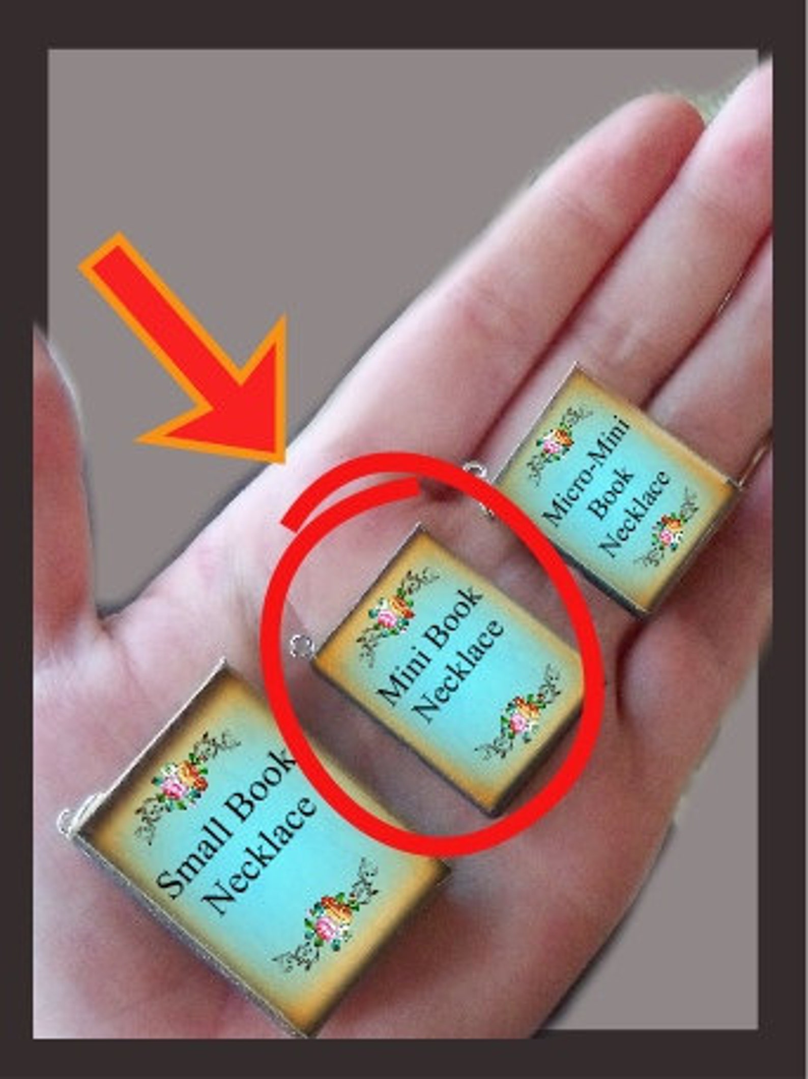 These adorable little books come as shown with your choice of size of Silver Plated Rolo Chain