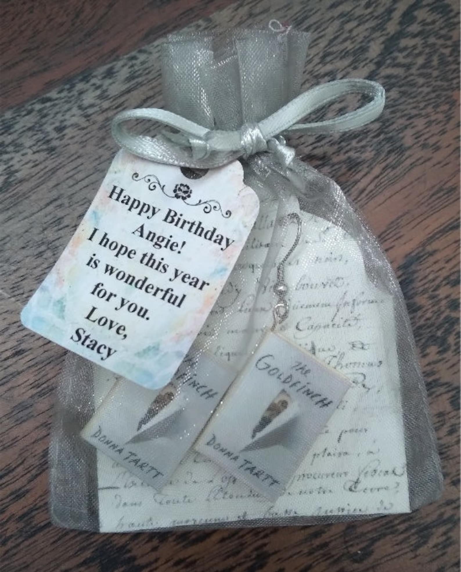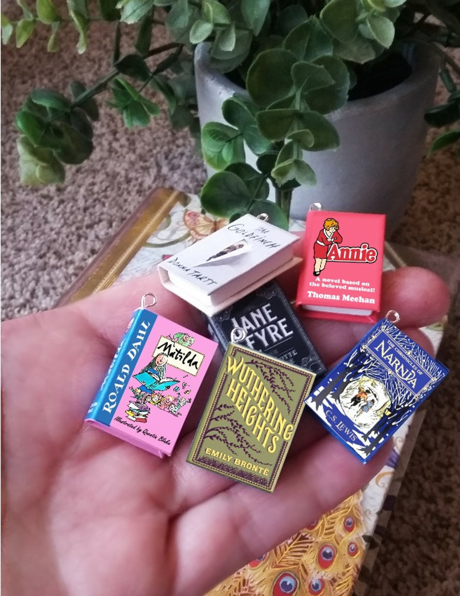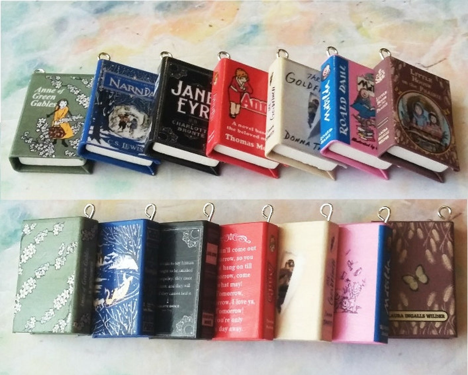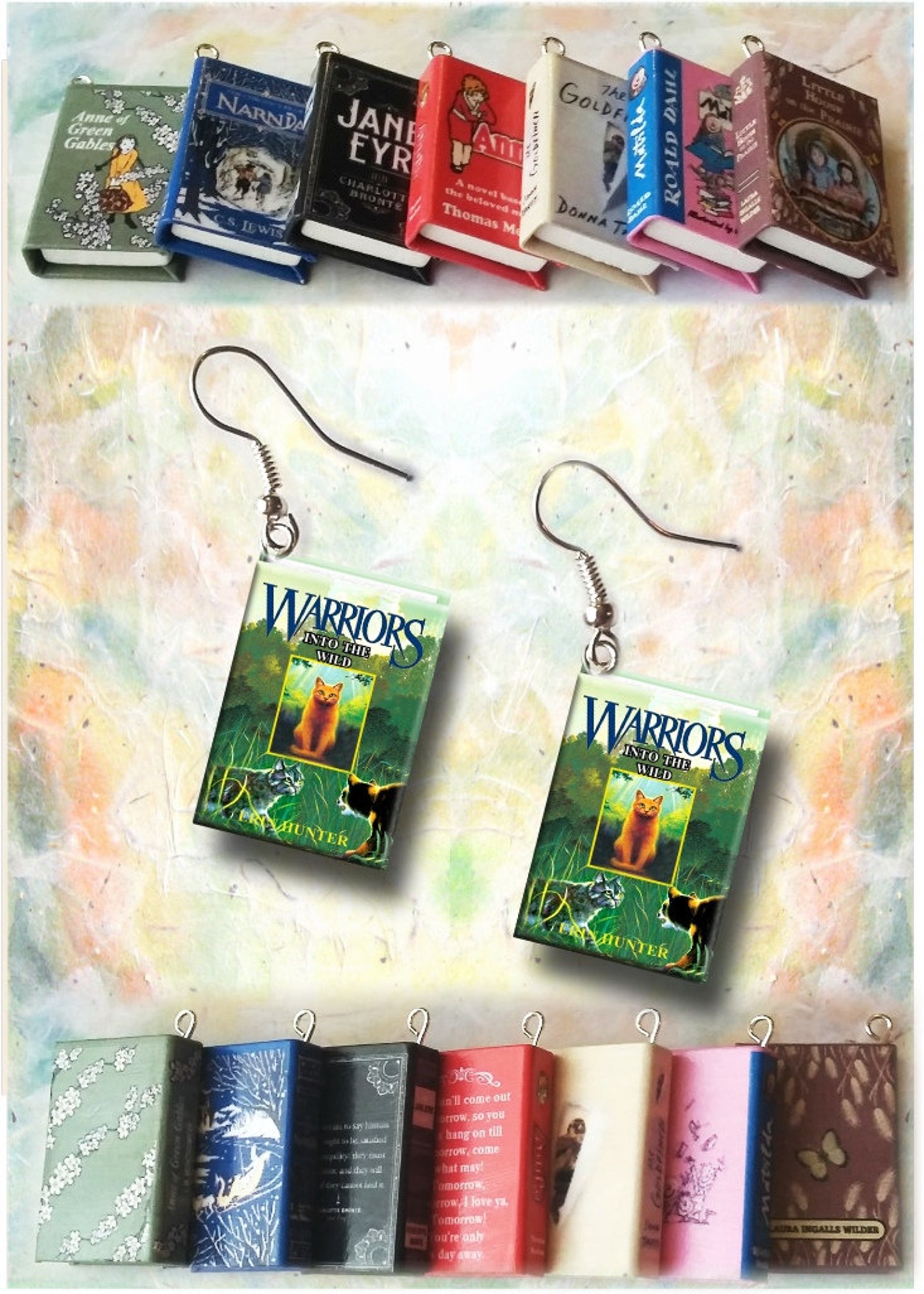 These earrings are the same size as the Micro-Mini book. Meticulously made to look like a real book, with the complete dust cover image on front , back and spine.