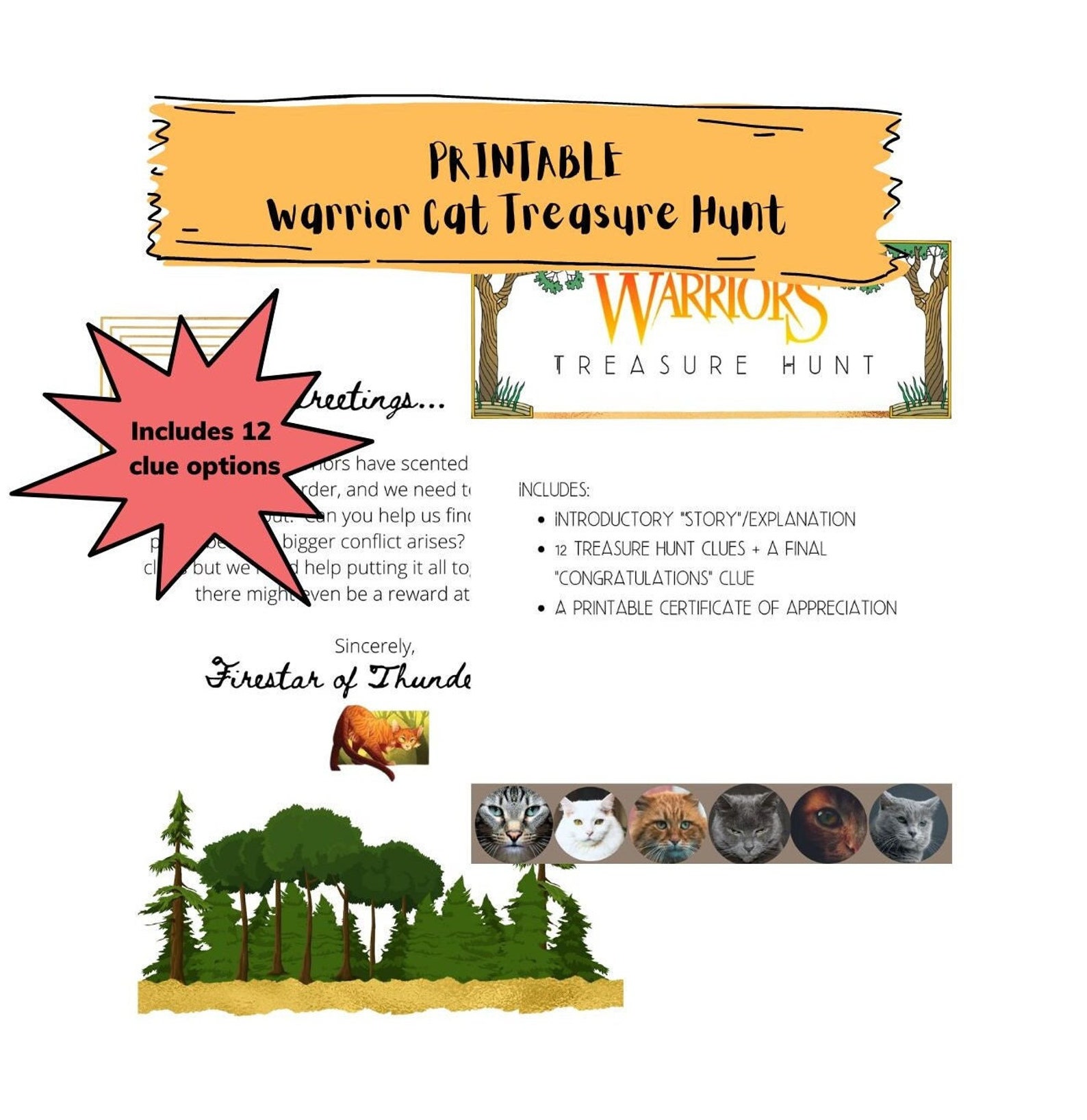 Warrior Cat Treasure Hunt Printable – Party Scavenger Game (Instant Download PDF)