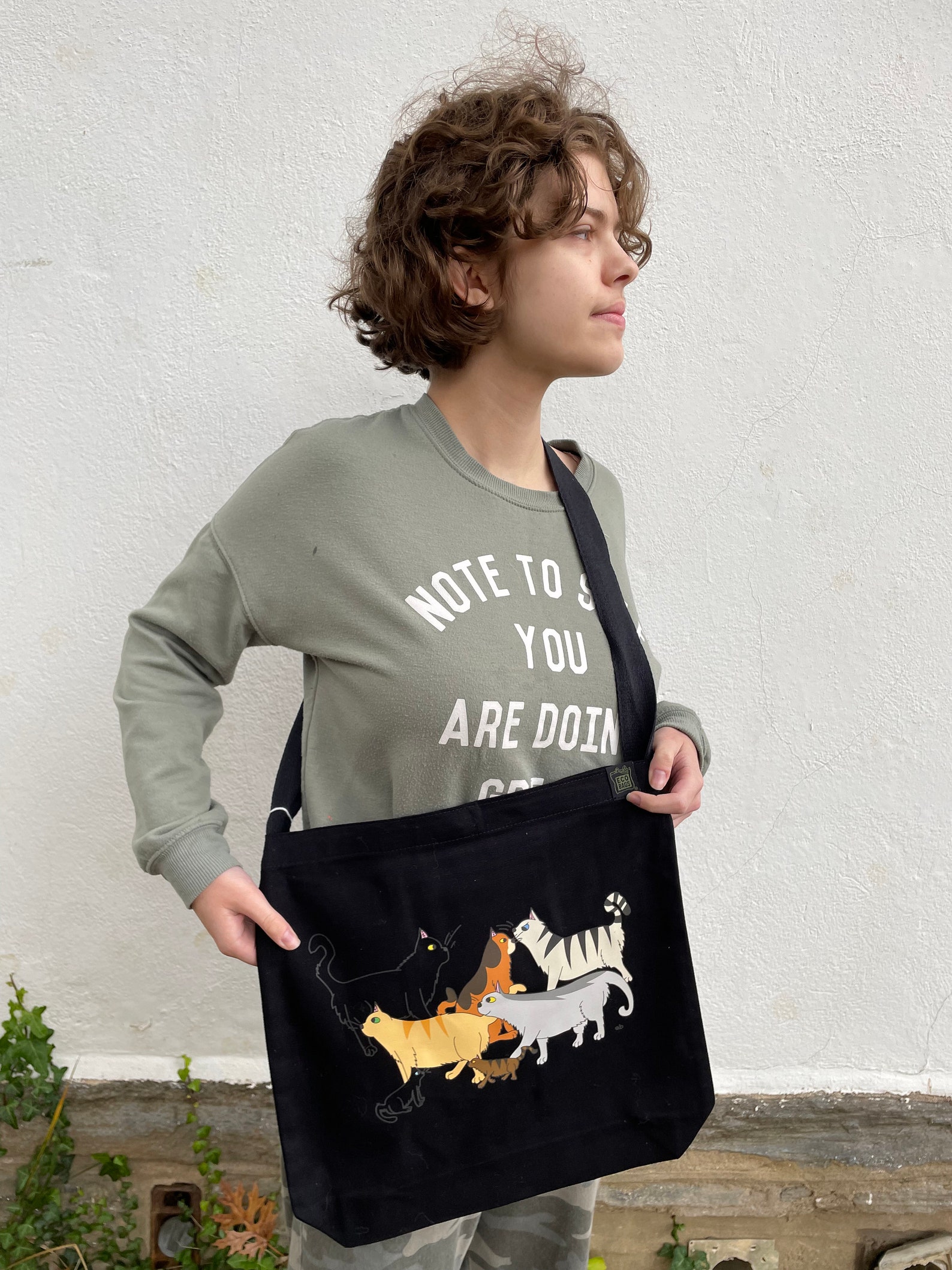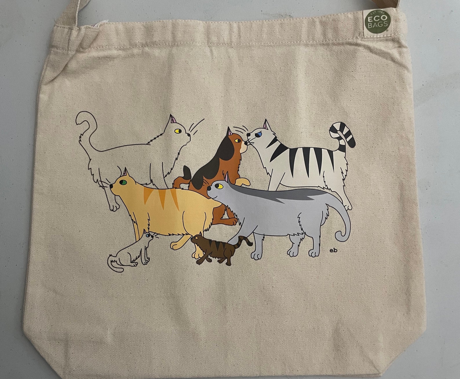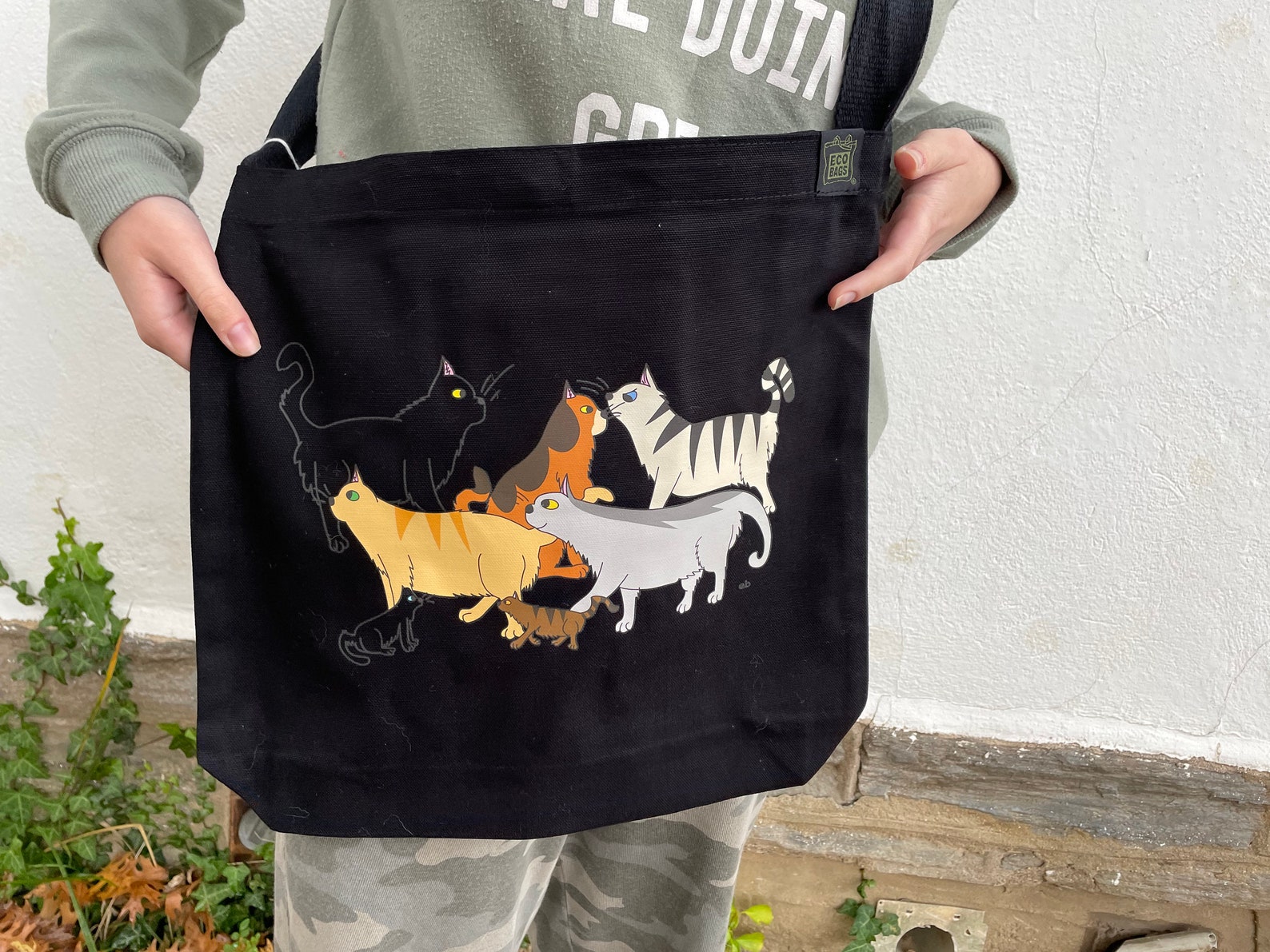 Warrior Cats in color ! - Sling bag in black or natural with original art by Emily Burke. This is how emily originally wanted to color them.