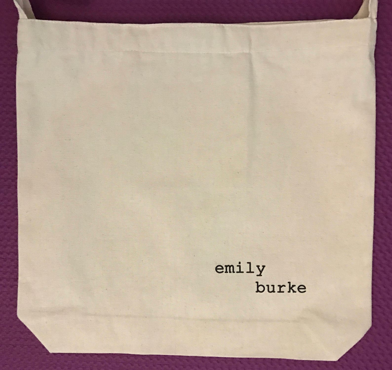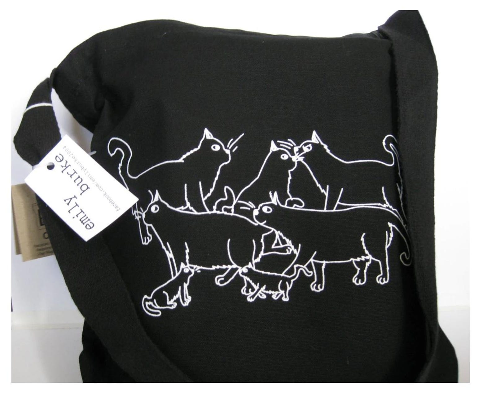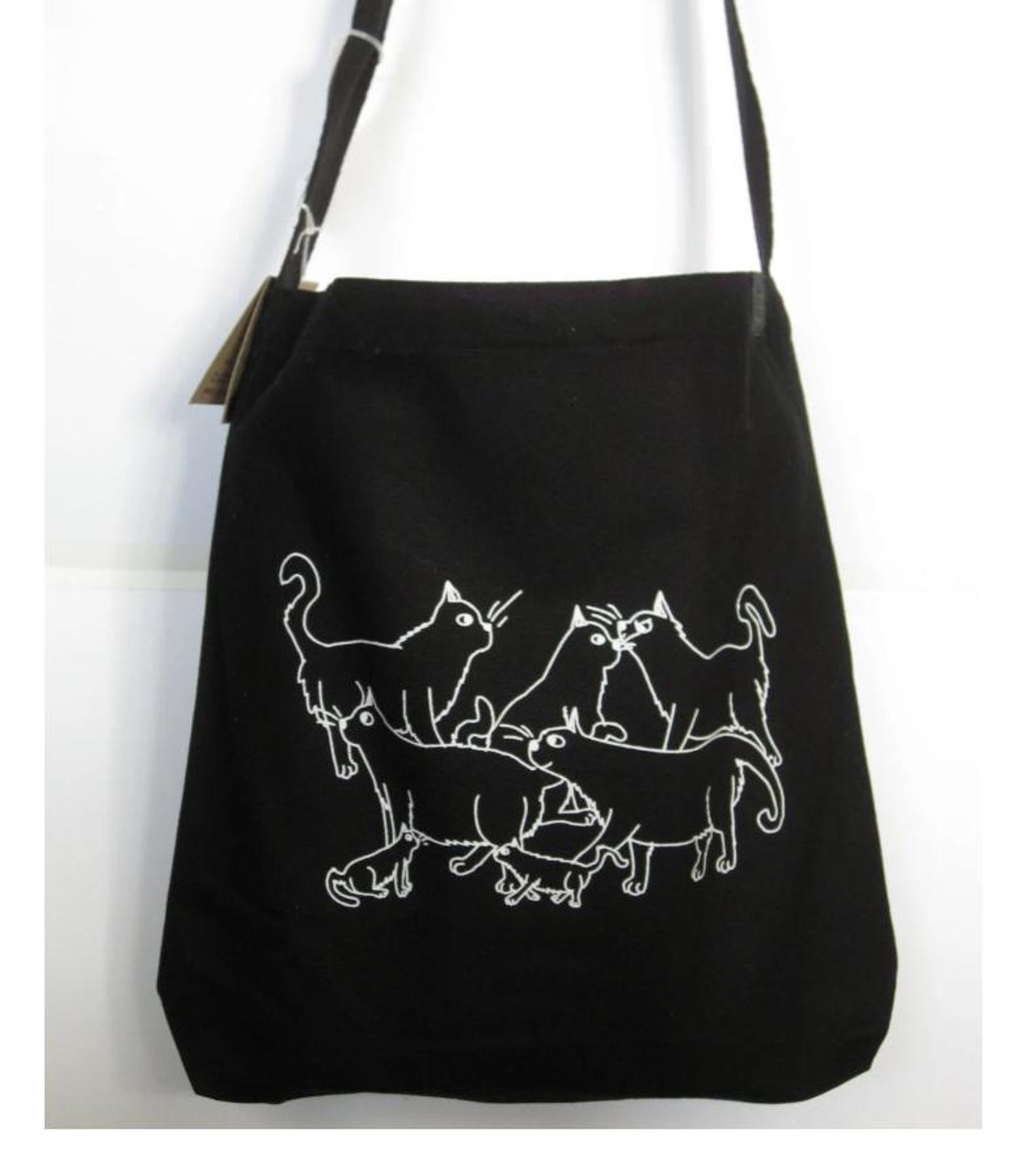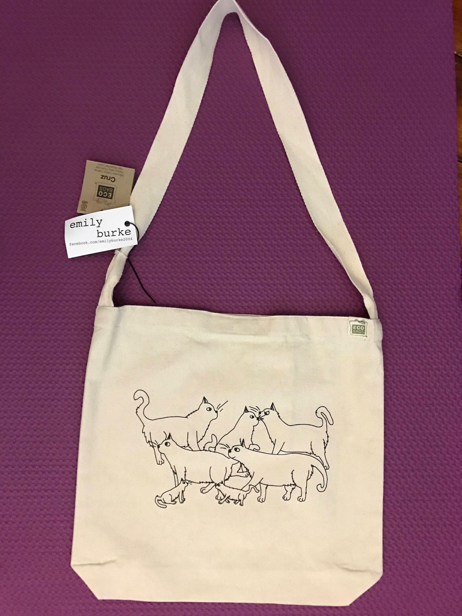 - Sling bag in Natural Canvas or Black with original art and modeled by emily burke