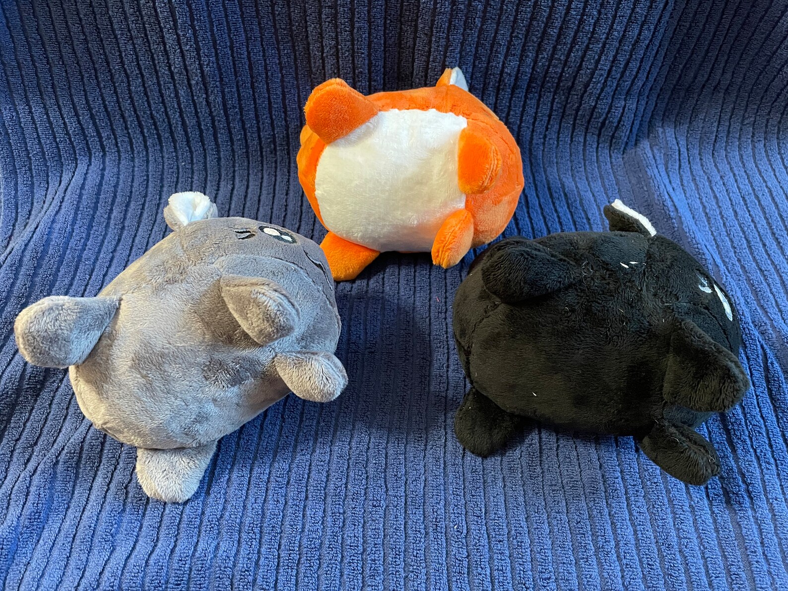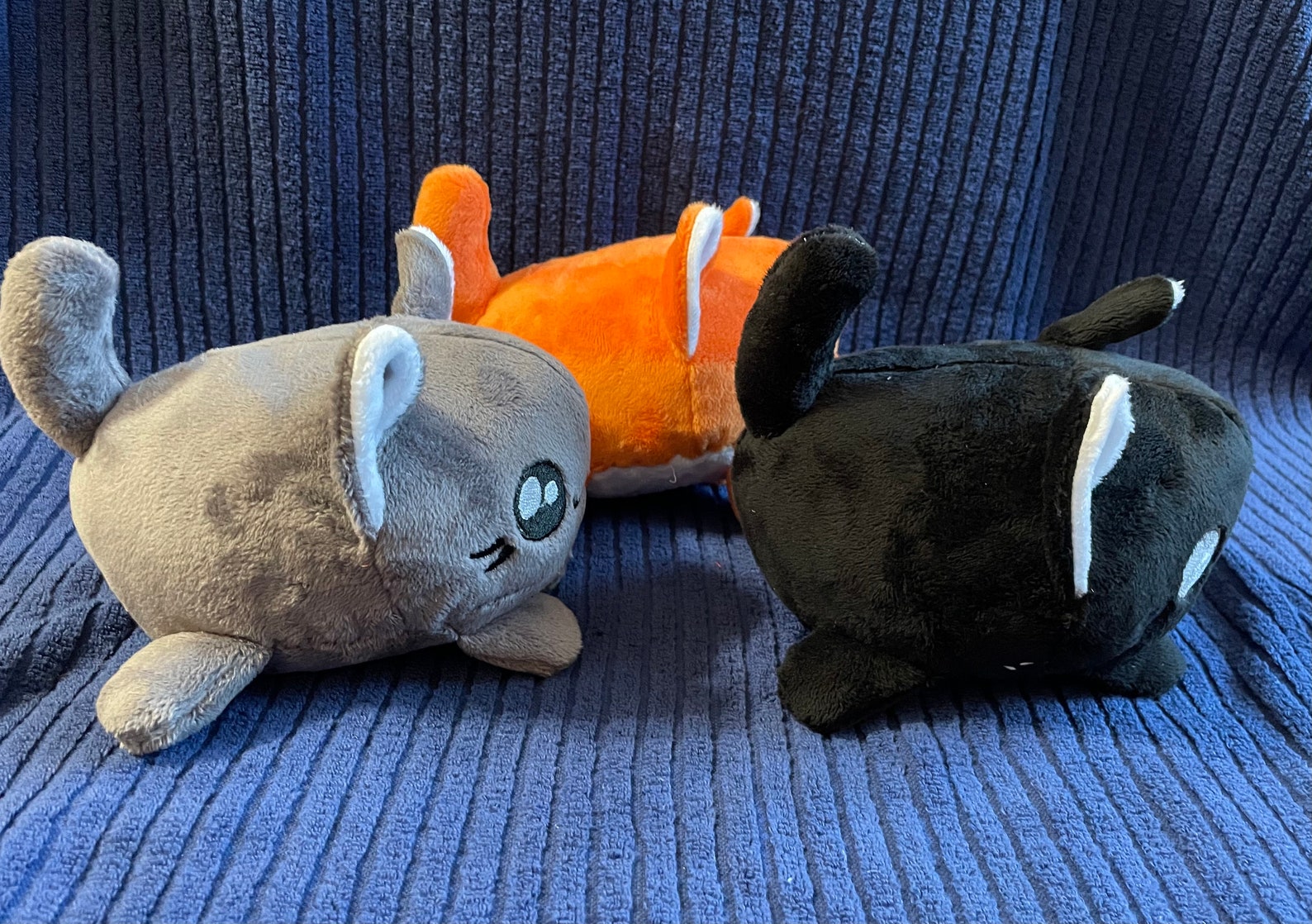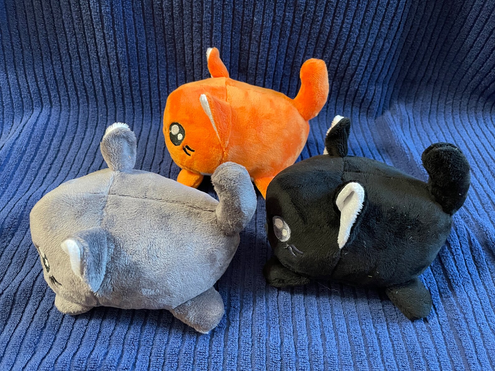 Cuddle with a cute cat loaf plush! These plushies are roughly 6 inches long, 4.5 inches wide, and 4 inches high. Each stuffed animal is constructed with soft minky fabric and stuffed with hypoallergenic polyester fiberfill.
