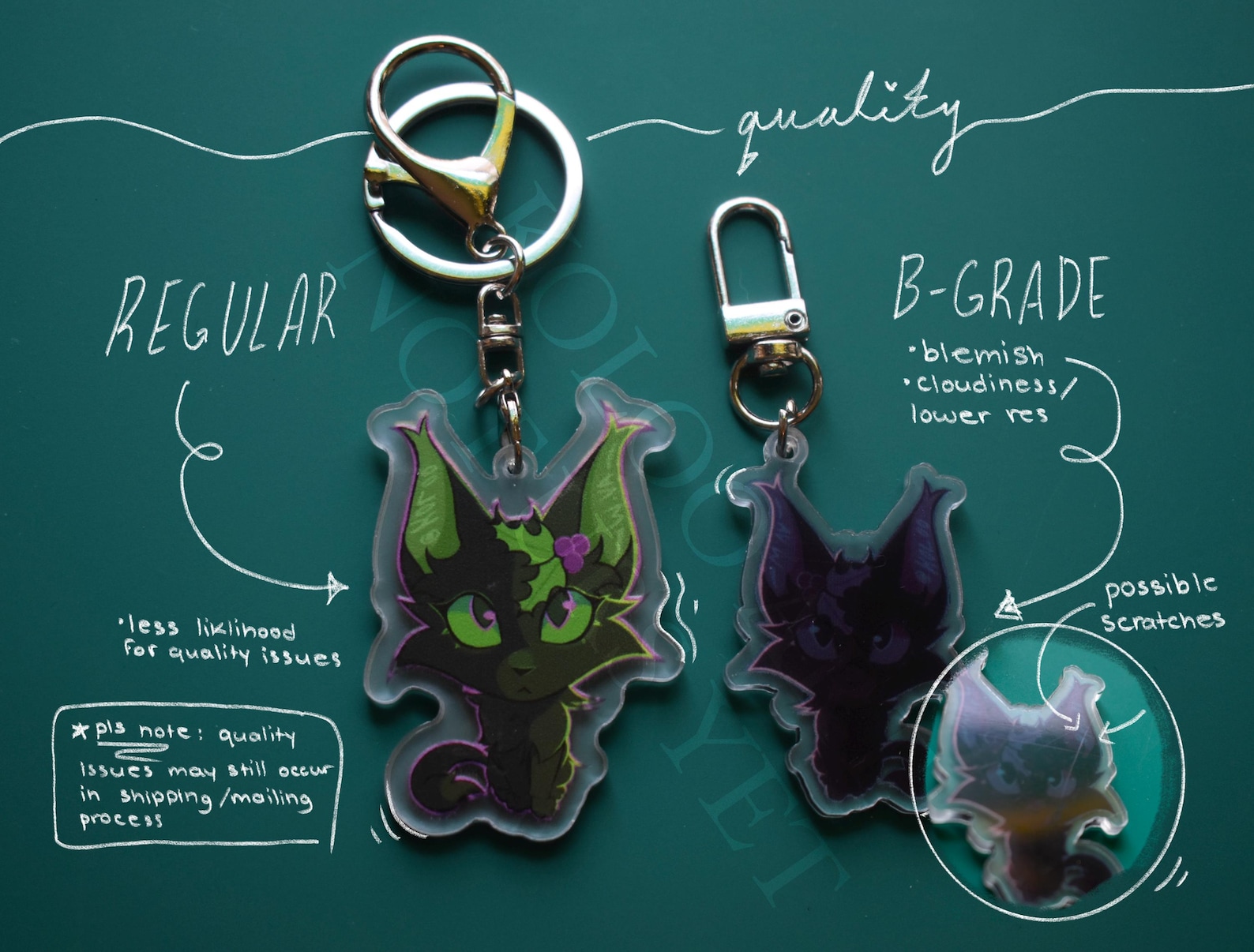 I'm in the process of trying out different ppl to help make my drawings into merch, so some items I will find come out in not as great quality as others, hence why I've labelled some as B-Grade and priced them lower. Since platforms like this take some revenue, it is difficult to price these items super low, but I have tried to create a price that is as reasonable as I can for the cost and time it took to produce, list, and market these items. I am by no means a professional, so no piece of merch (B-Grade or otherwise) will be 100% perfect all the time, but I'm doing the best with what I've got! >:D