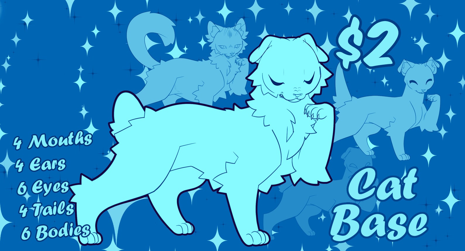 6 Bodies, 4 Tails, 6 Eyes, 4 Ears, 4 Mouths, and 3 tiny extra features.
