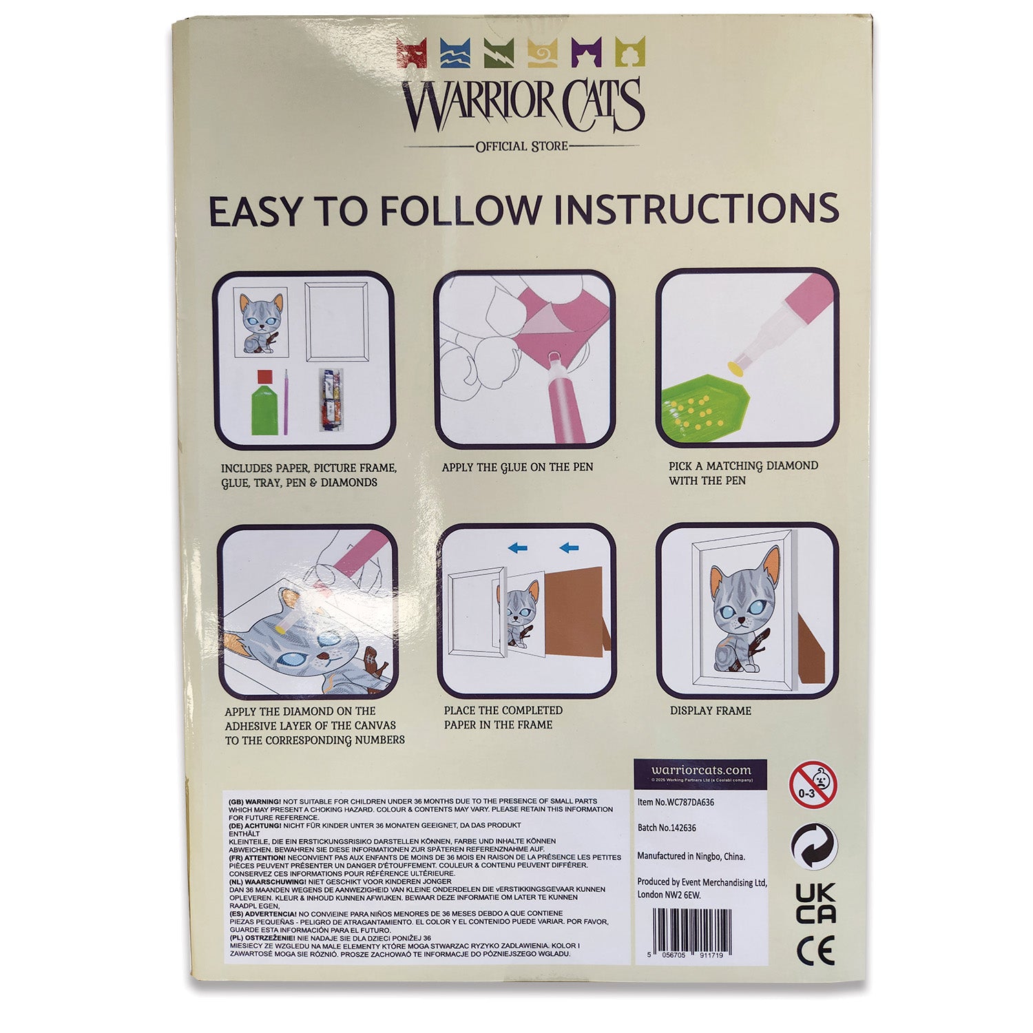 Get crafty with your favorite feline friend. This set comes with all the tools you need to apply different shades of gems onto the Jayfeather canvas, and a box frame to display your finished piece with pride on that Warrior Cats shelfie.