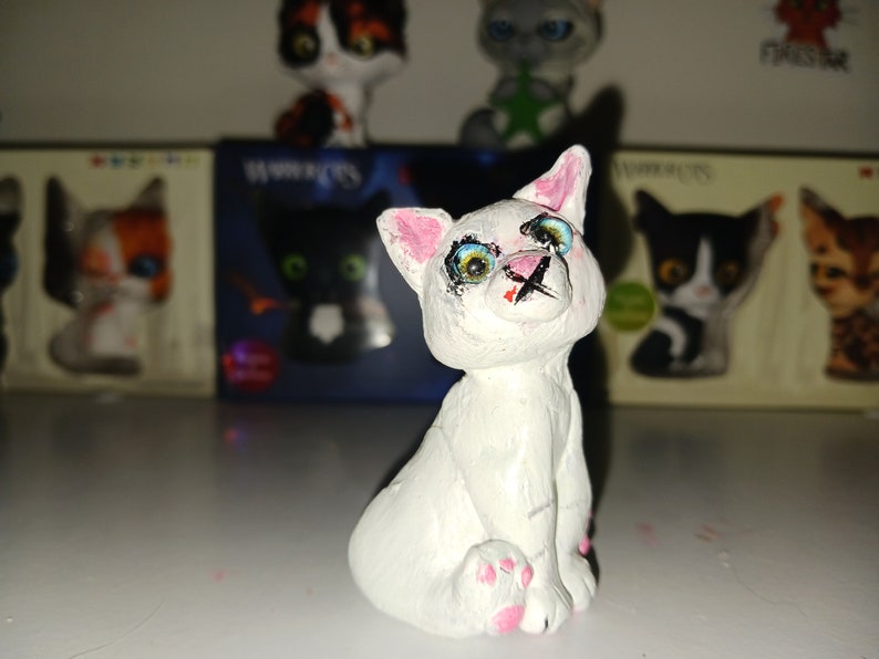 Warrior cats snowkit clay figurine. Snowkit speckletails kit. Approximately 2 inches tall and 1 inch wide. (All figures are made to order so they're may be some differences from the photos)