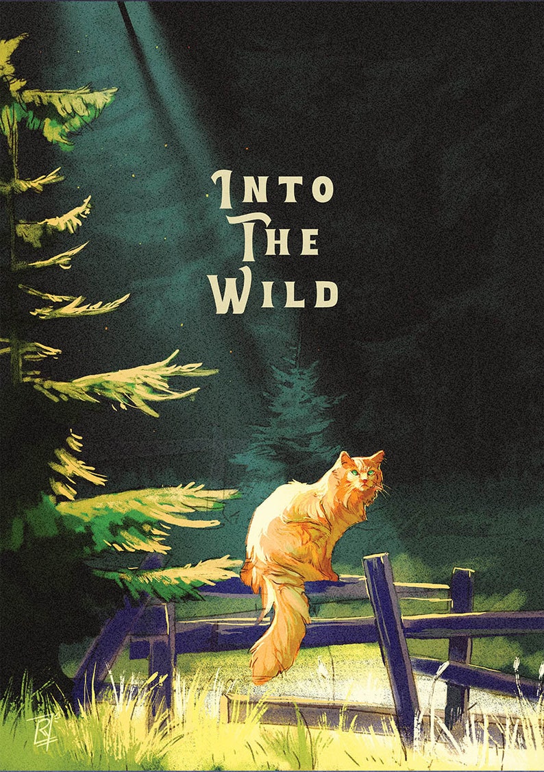 Sie zeigt meine Illustration einer Szenerie aus der berühmten Buchreihe Krieger von Erin Hunter, in der die Szenerie von Feuerherz im Mittelpunkt steht.