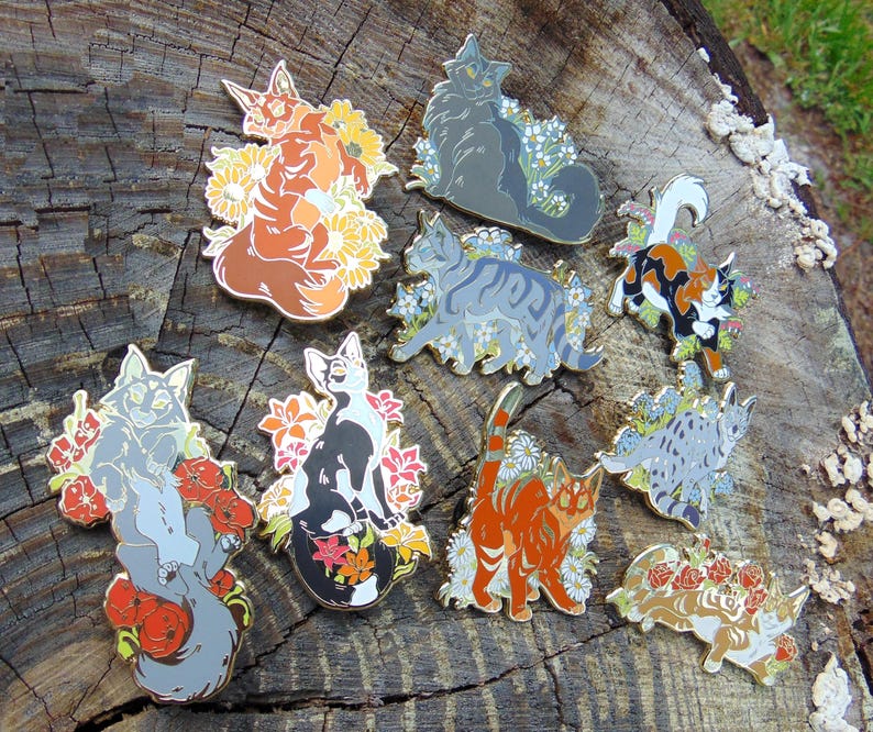 Welcome to the Garden of Warriors, a set of floral hard enamel pins inspired by the Warriors book series! They're purrfect for regular cat lovers too! This listing is for the full set of 10!