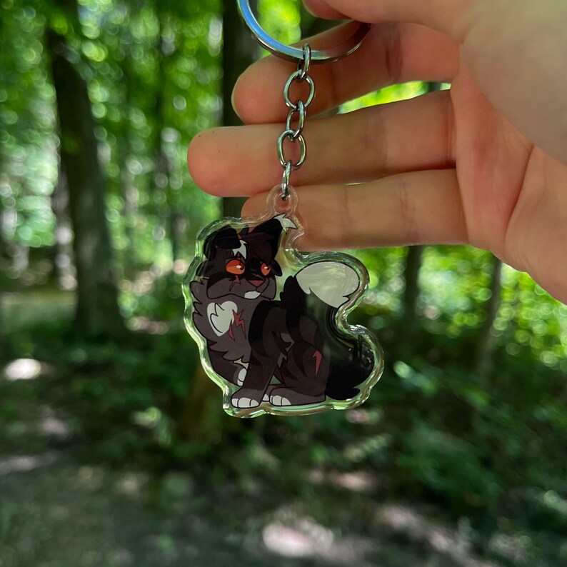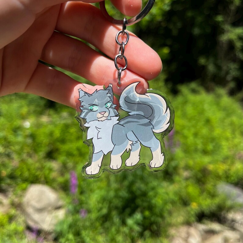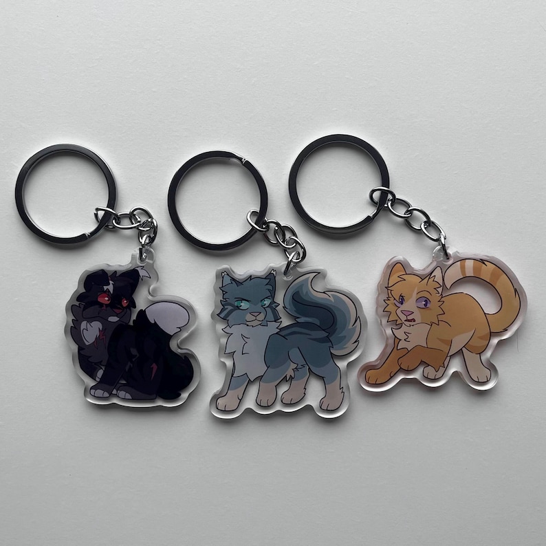 Double sided 2 in. The Broken Code Bristlefrost, Rootspring, and Shadowsight warrior kitties (front side epoxy) keychain charms for backpacks, purses, display, etc.