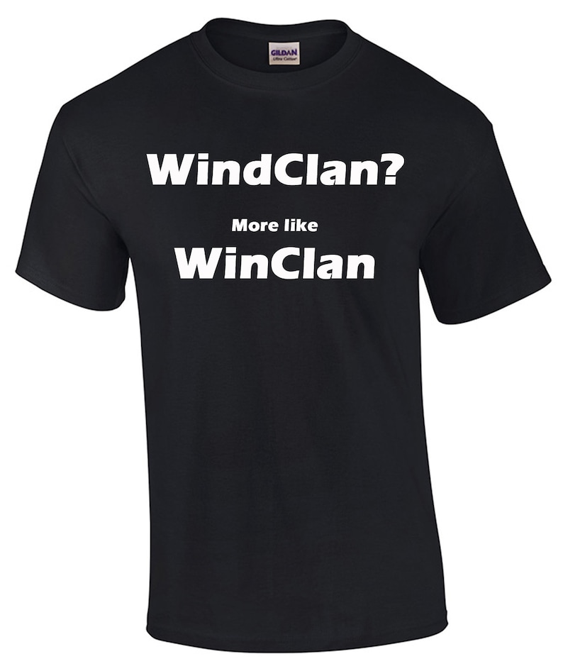 Like t-shirts with sayings on them? Who doesn't! This particular listing features the saying "WindClan? More like WinClan" which let's be honest, is quite true isn't it? These shirts are made by the company gildan, which is a reputable company and we chose their higher quality line, the 2000's. The saying is also put on with vinyl, and they will last many washes.