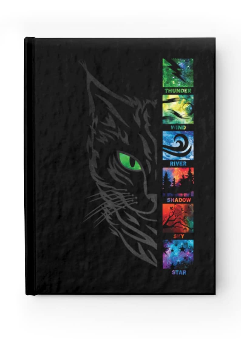 Perfect sketchbook for the Warrior Cat fan. 118 ruled line pages (59 sheets) with front cover print. Back cover is dark gray. Notebook measures 7.25" H x 5" W.