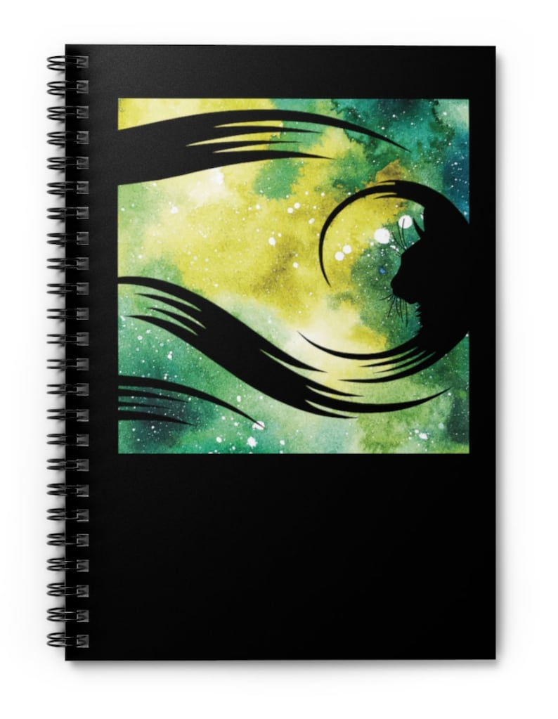 Perfect notebook for the Warrior Cat fan. 118 ruled line pages (59 sheets) with front cover print. Back cover is dark gray. Notebook measures 8" H x 6" W.
