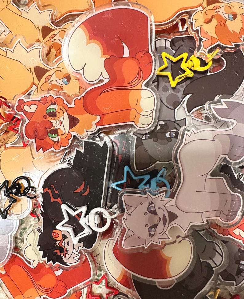 3.5 inch Warrior cat Keychains based off the arc, The Broken Code. These charms are great for bags, hats, whatever you wish to clasp your keychains on! Your charm(s) could arrive appearing scratched or damaged, but fear not! This is just a protective film on the outside to ensure the acrylic is protected throughout the shipping process. This should be peeled off once the charm arrives!