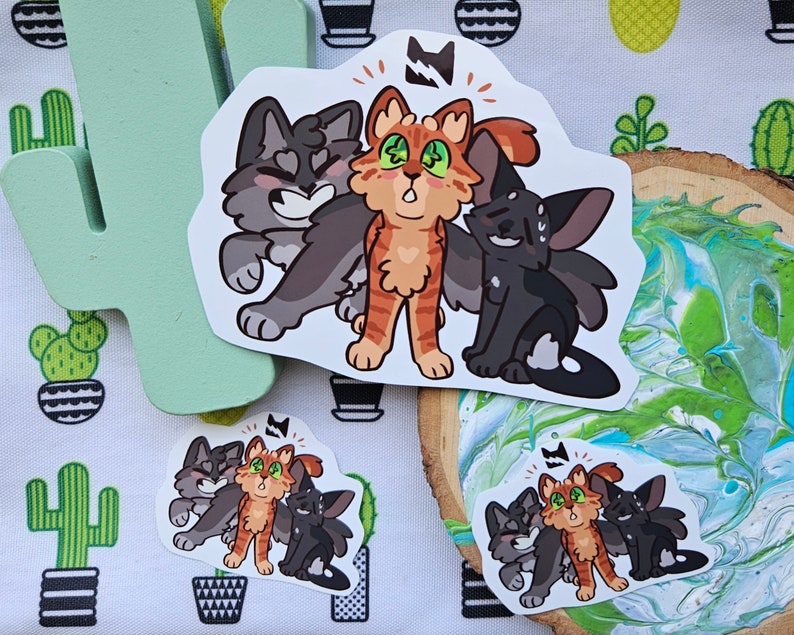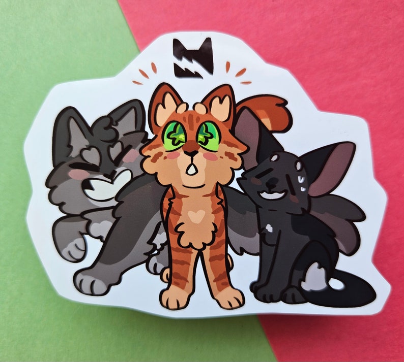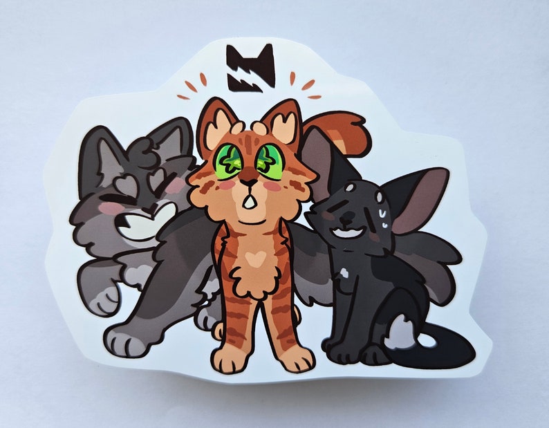 Here's a sticker honoring the iconic friendship between Firepaw, Ravenpaw, and Graypaw! Even though those days are long gone, you can carry a piece of them with you