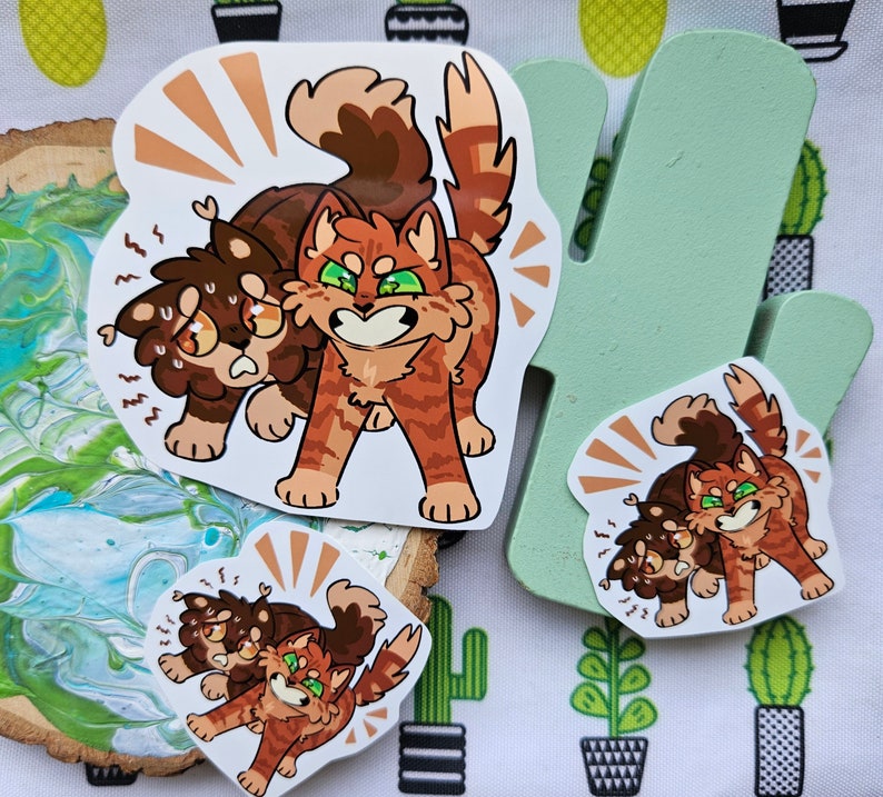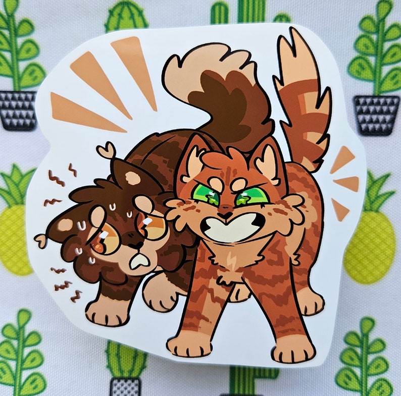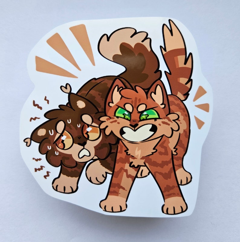 Here's a sticker of the BrambleSquirrel kiddos, Alderheart and Sparkpelt! Definitely polar opposites