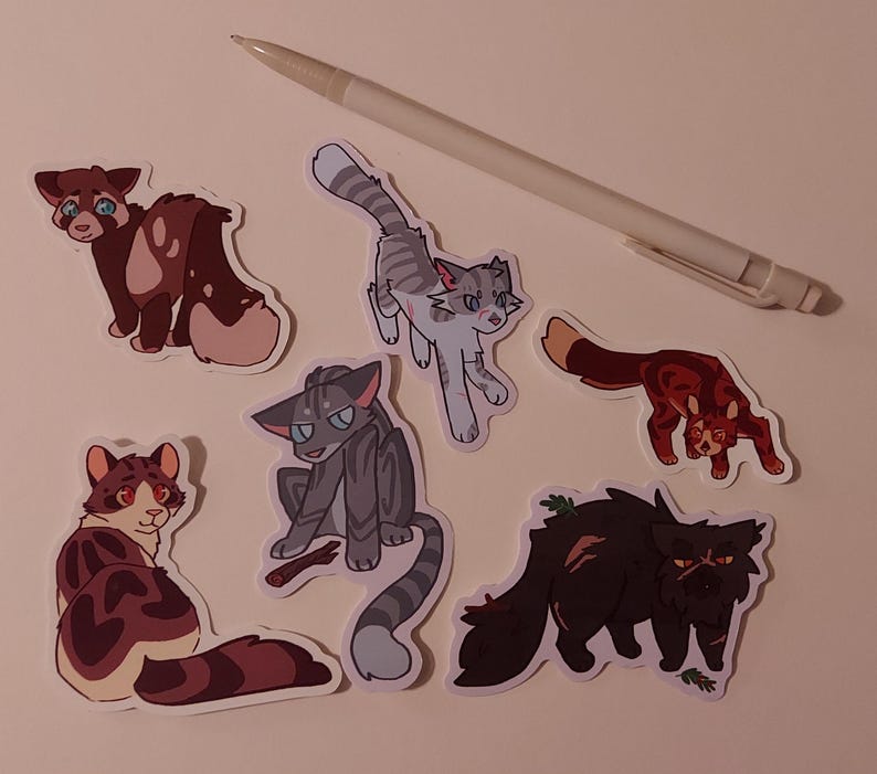Warrior cats vinyl stickers! Weather proof. All drawn by me!
