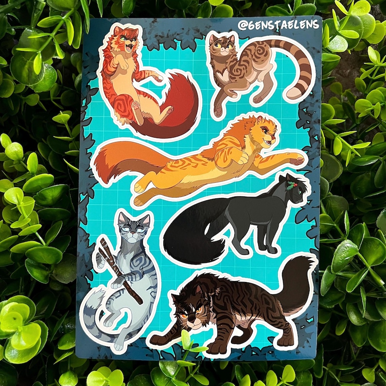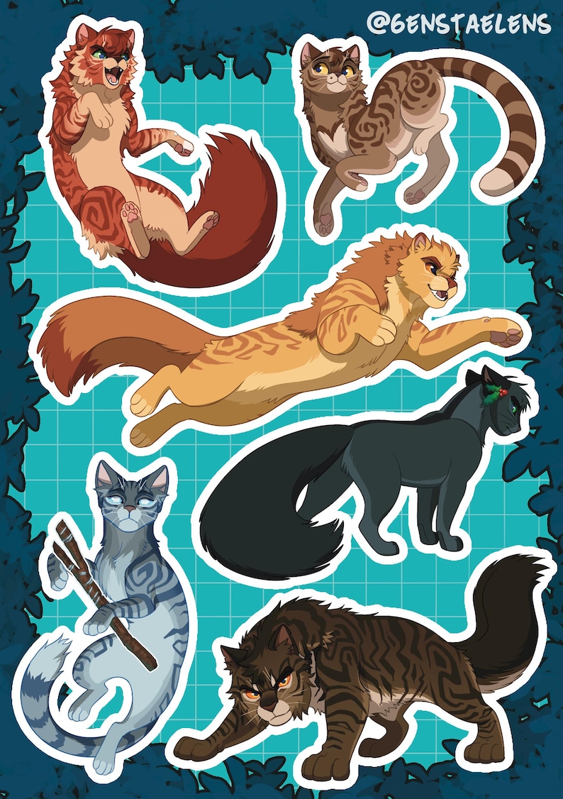 Glossy sticker sheet including characters inspired by 2nd generation and power of three characters from the Warriors series and beyond.