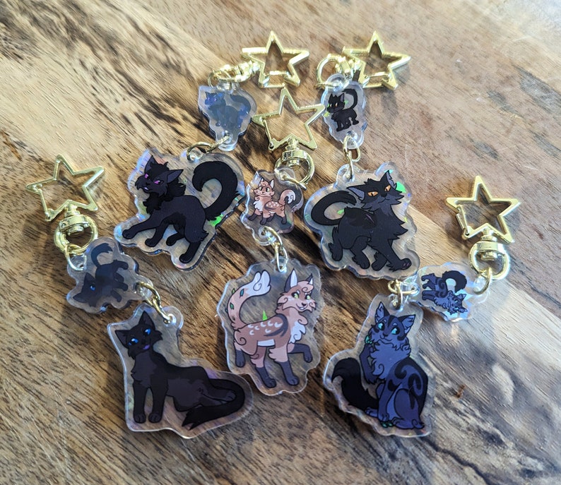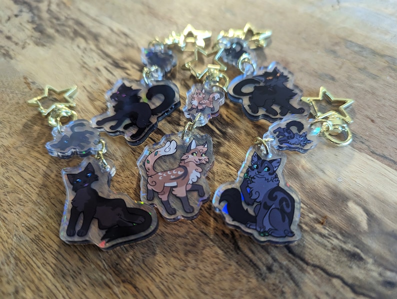 These charms include one 1 inch charm and one 1.5 inch charm, with double sided printing and holographic material on one side!