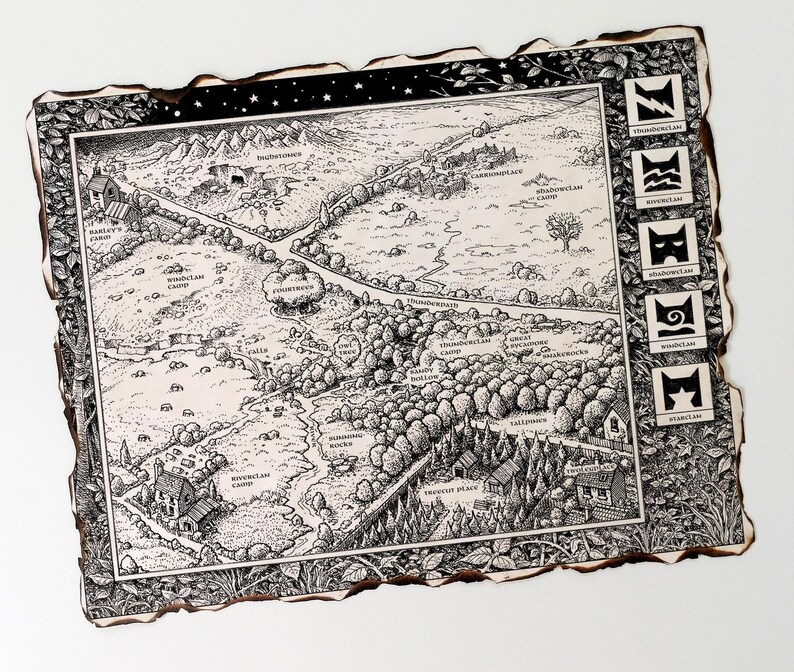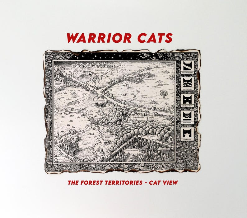 Warrior Cats BEST GIFT - the Forest Territories Map, The Prophecies Begin Map, The Old Territories, Warrior Clan Map, White Hart Woods Map
