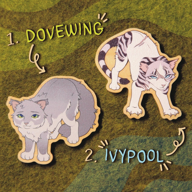 Looking for a character from The New Prophecy? Try: <a href="https://www.etsy.com/listing/1843838713/wooden-pins-the-new-prophecy-war-cats" target="_blank" tabindex="-1">https://www.etsy.com/listing/1843838713/wooden-pins-the-new-prophecy-war-cats</a>
