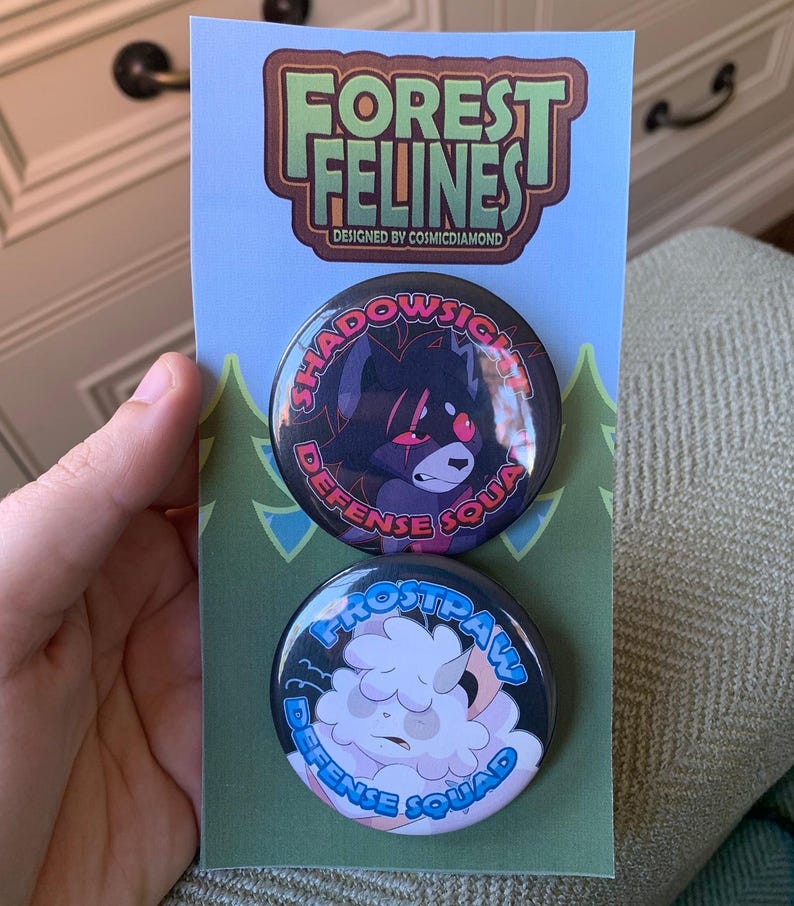 Want to show that you're a proud defender of your favorite tortured healer? Great news, now you can! Protect your favorite sad, sopping wet doctor cat with these 2.25", metal pin-backed buttons. These are hand cut, printed, and stamped by yours truly! Two options, Shadow Sight and Frost Paw / Dawn. Available individually or in a set!