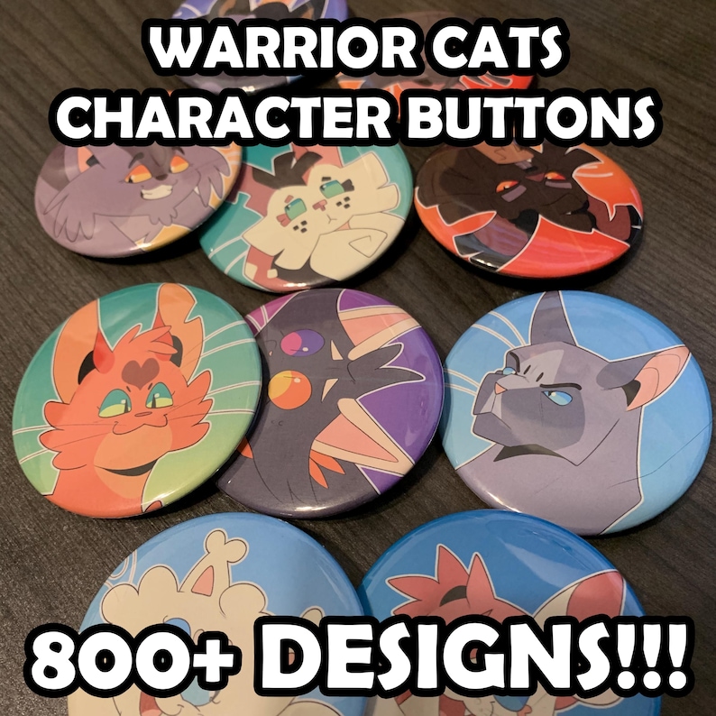 Get ANY warrior cat on a 2.25" metal pinback button! PLEASE CHECK IF A CHARACTER IS AVAILABLE BEFORE ORDERING. SOME CHARACTERS HAVE NOT BEEN DRAWN YET. Do "ctrl+f" on the linked page below to see if a character has been designed. If their name is paired with the placeholder "no image" pic, then they have not been drawn yet. If they have been drawn, they will have a pic, and you can put their name in the item personalization option and they will be buttonified! If there are multiple characters with the same name, please specify WHICH character! (for example, for Nutmeg from Tallstar's Revenge, type "Nutmeg (TR)". For Nutmeg from Onestar's Confession, type "Nutmeg (OC)" ). Background color is character's eye color.