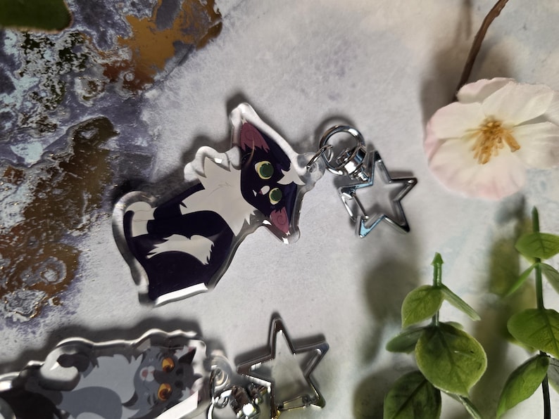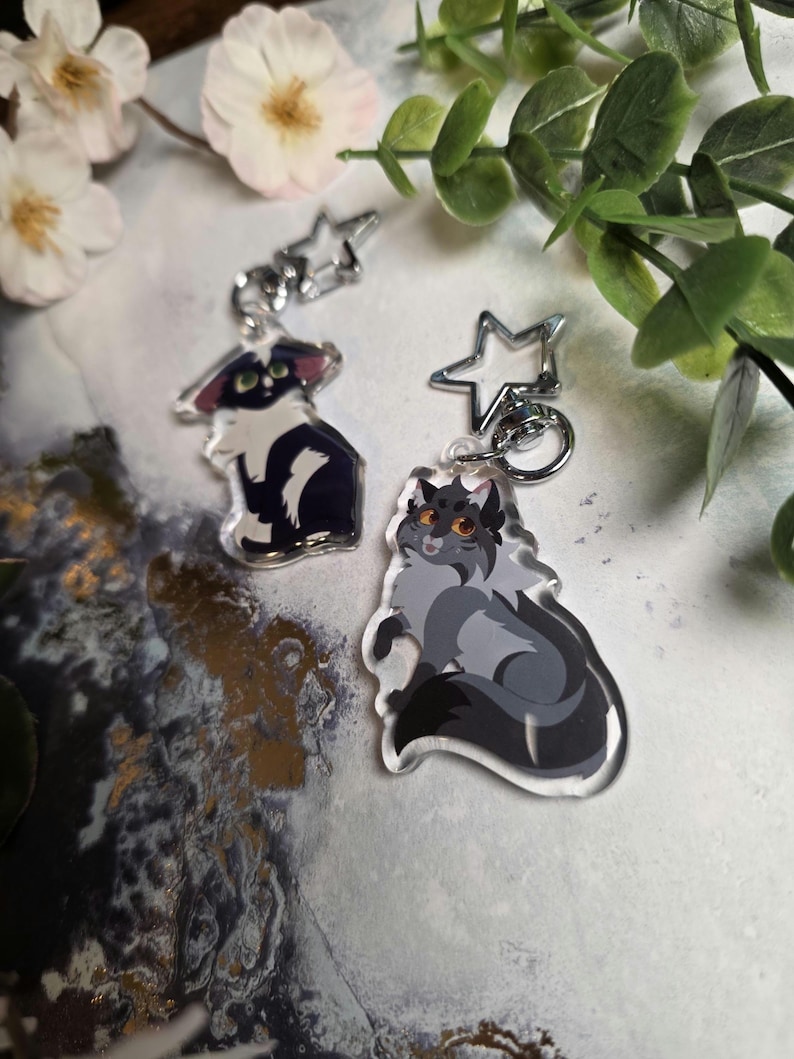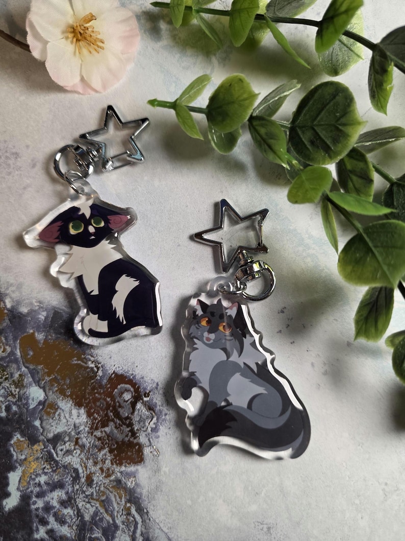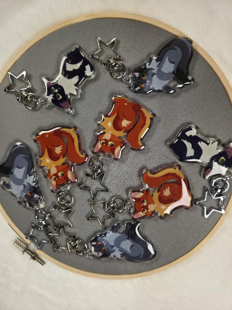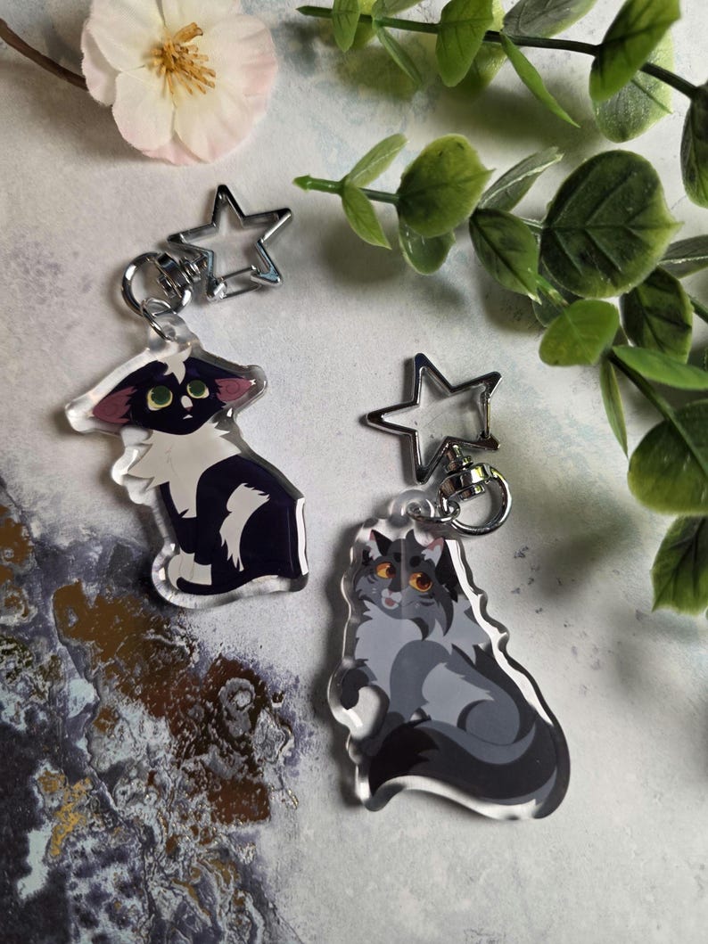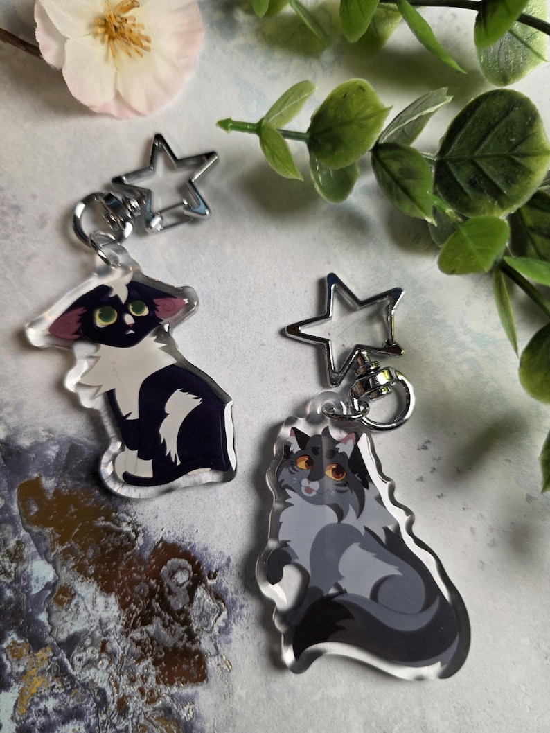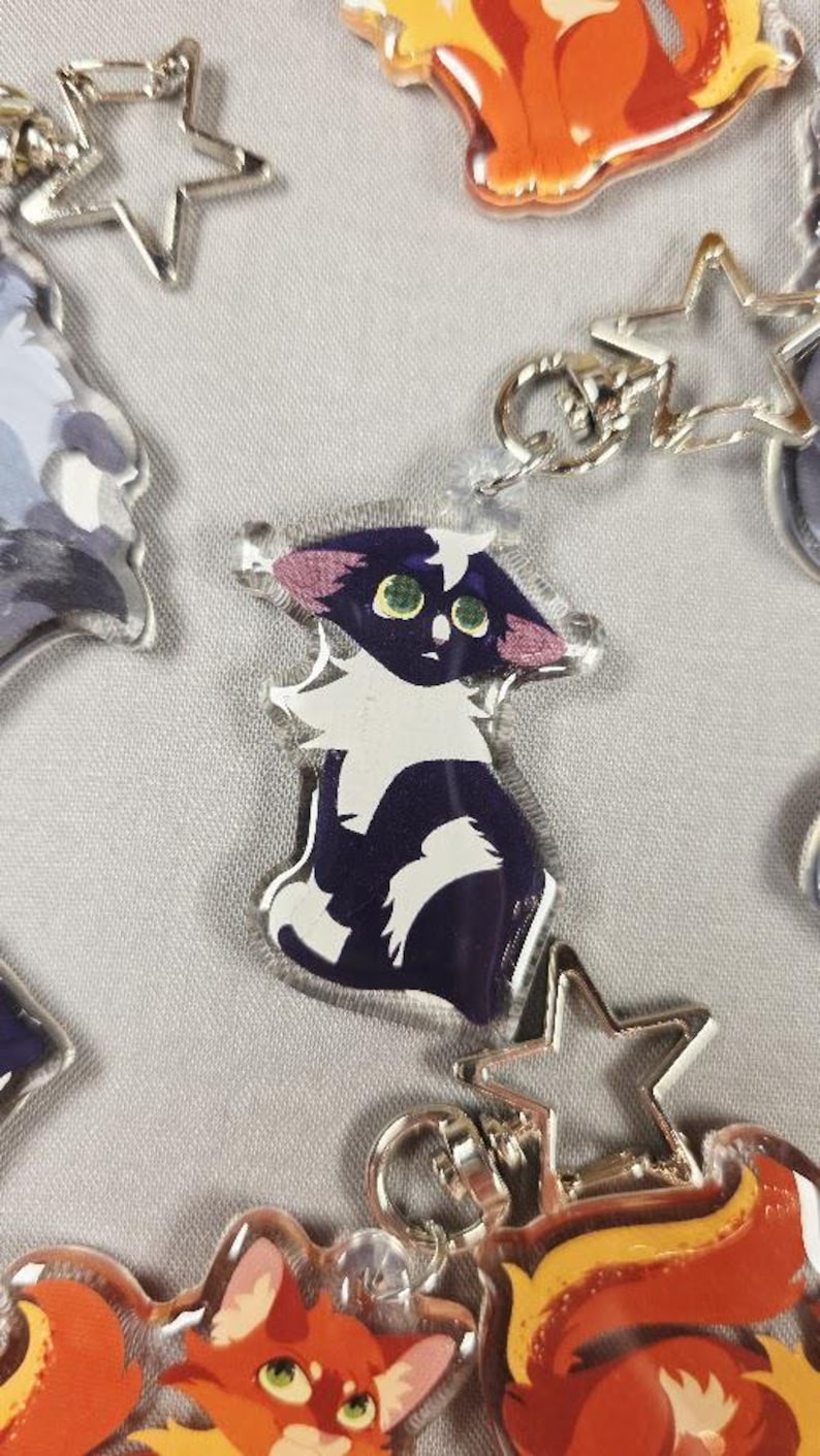 Celebrate your favorite Warrior Cats characters with these high-quality, double-sided epoxy keychains. Each keychain features vibrant artwork and a sturdy star-shaped clasp, making them perfect for backpacks, keys, lanyards, or display.
