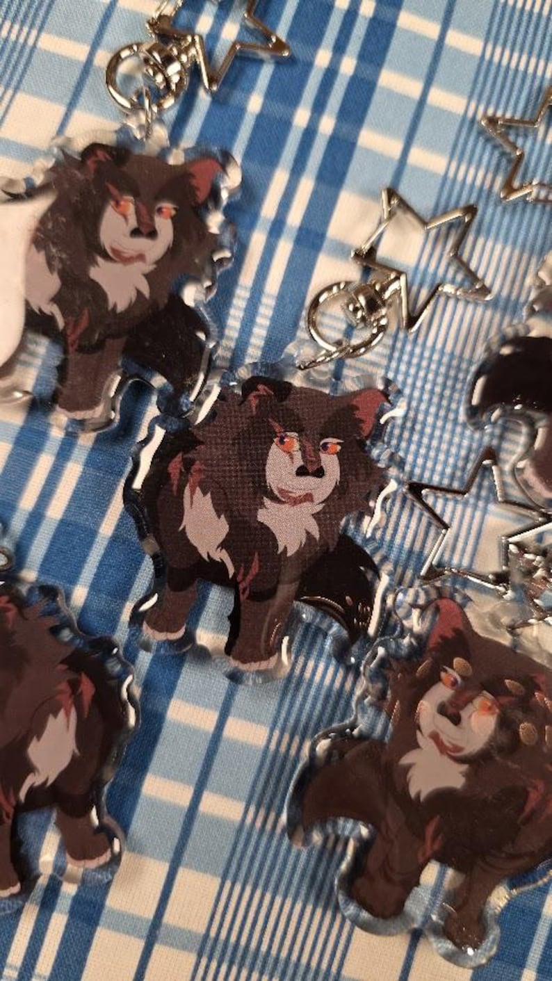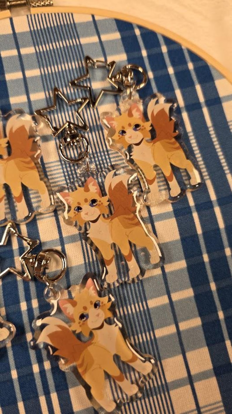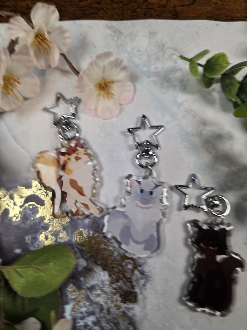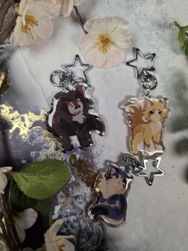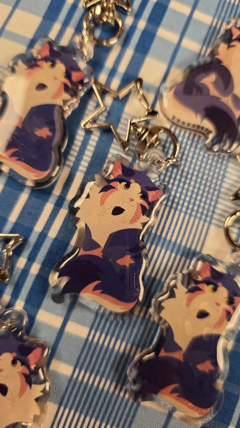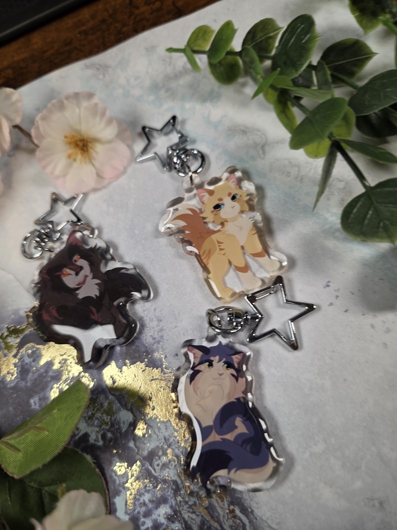 Search tags: warrior cats keychain, bristlefrost charm, rootspring keychain, shadowsight merch, warrior cats merch, epoxy acrylic keychain, double sided charm, star clasp keychain, warrior cats gift