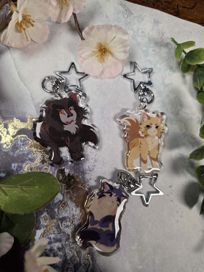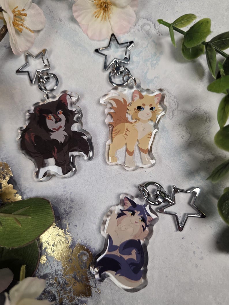 Bring your favorite Warrior Cats characters to life with these high-quality epoxy keychains. Featuring detailed double-sided artwork, each charm captures the spirit of the beloved characters from the series. Perfect for fans, collectors, or as a gift for any Warrior Cats lover.