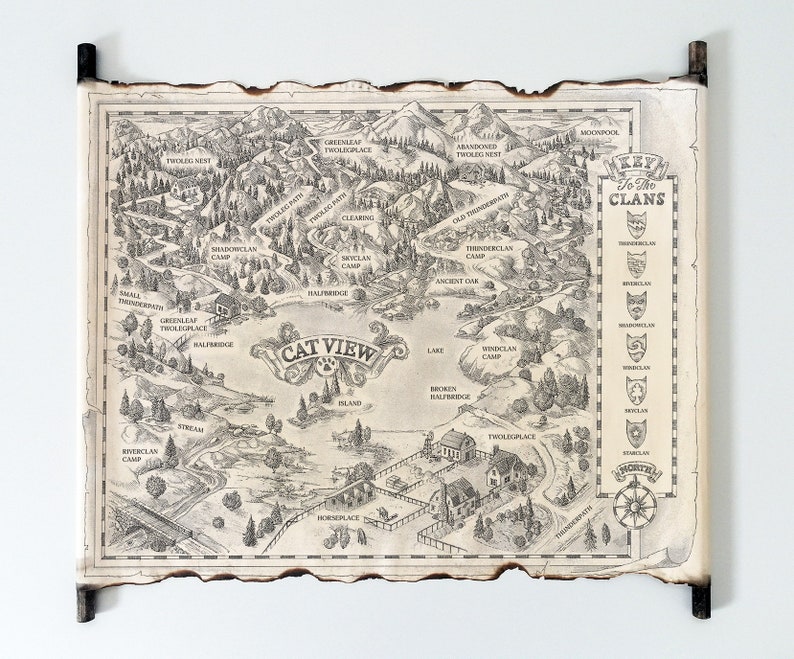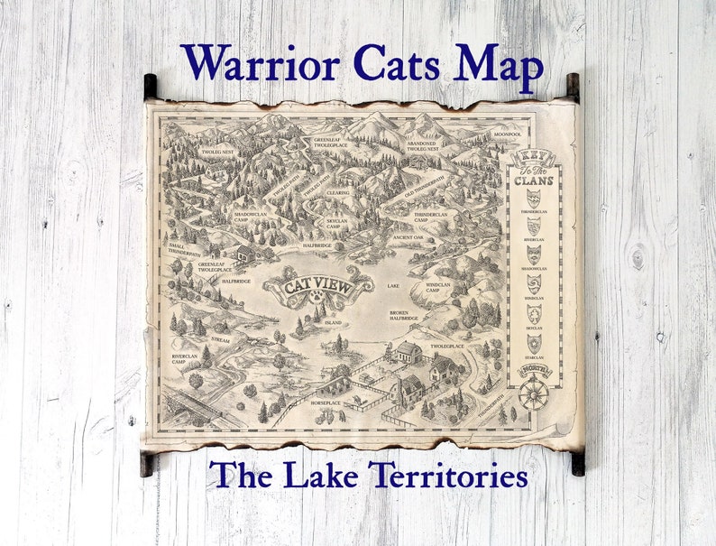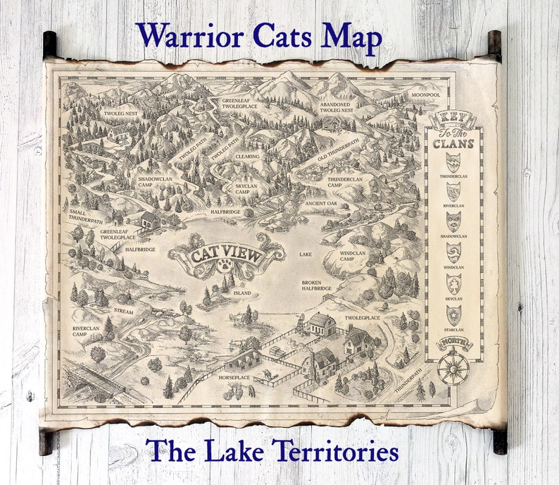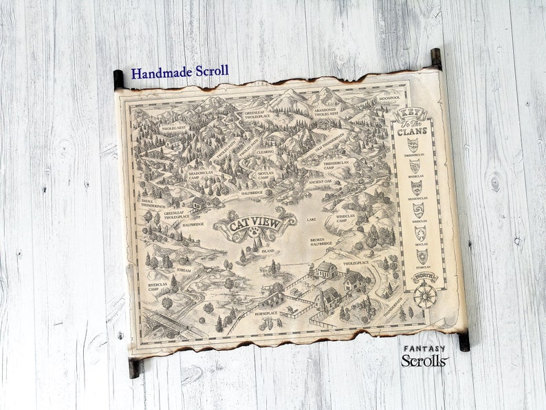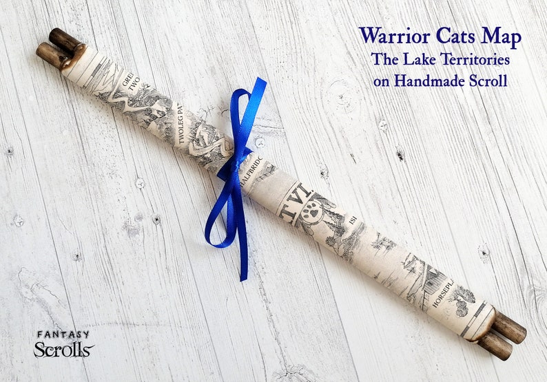Warrior Cats Book Map on Handmade Scroll, The Lake Territories Map, New Territories Map, Warriors Series Map, Cat View, Sanctuary Lake, Bookish Gifts, Book Lover Best Gift, Free Shipping