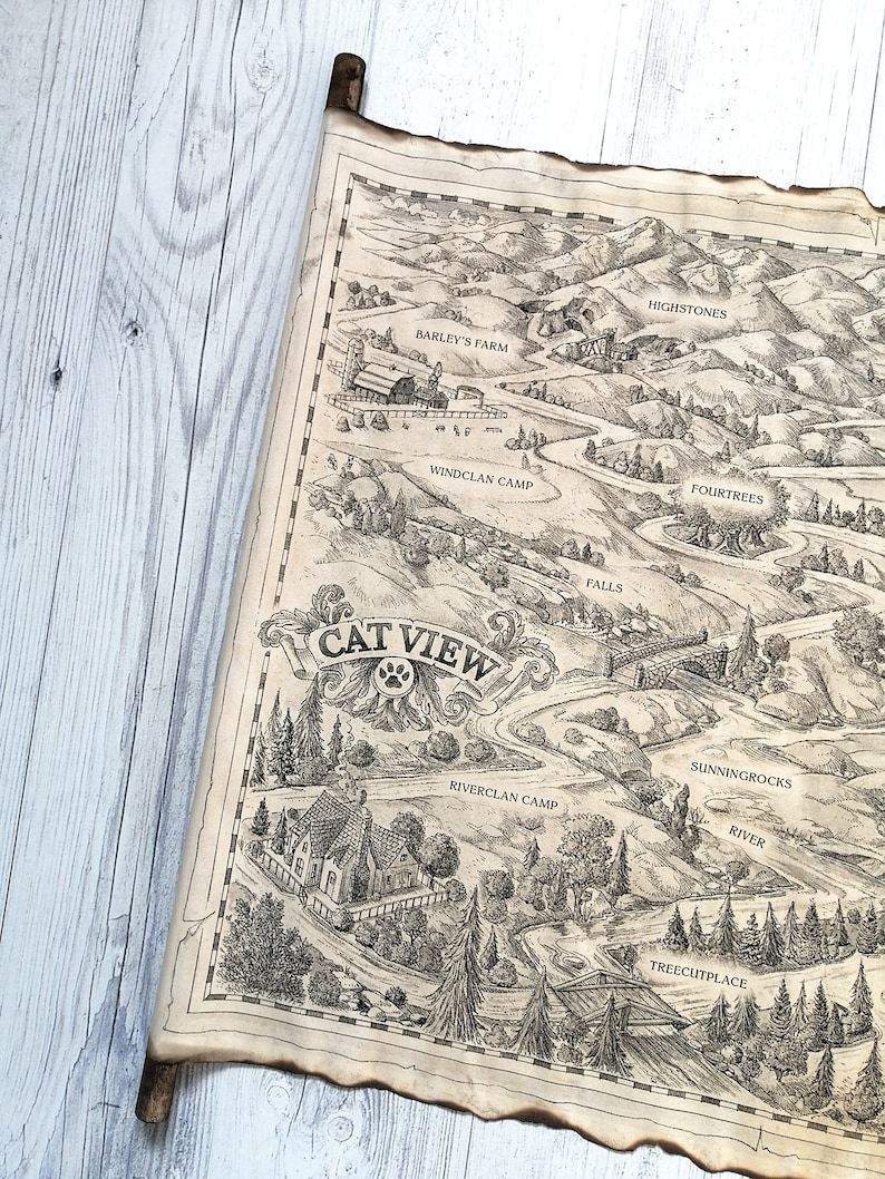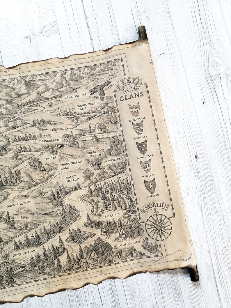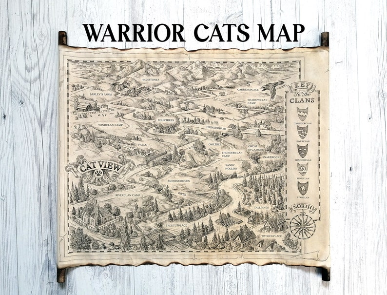 Warrior Book Map, Warrior Cats Map, TheForest Territories Map, Cat View Map, The Prophecies Begin Map, The Old Territories, Warrior Clan Map, Fantasy Map, Bookish Gifts, Book Lover Gifts, Bookshelf Decor, Free Shipping, Personalized Gifts, Custom Book Maps, Fantasy Art