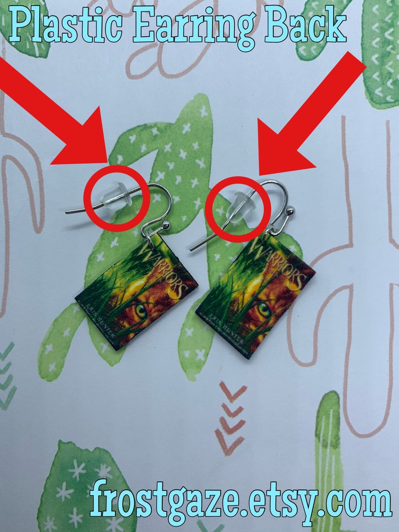 Each earring has a nickel free fishhook base with a jump ring securing the book to the earring. The earring piece is made out of rhodium, making it hypoallergenic. It is safe for sensitive ears. The front of the book is smooth to the touch, while the sides and back are painted black. Plastic earring backs will be provided for free. (to make sure the earring doesn't fall out!)