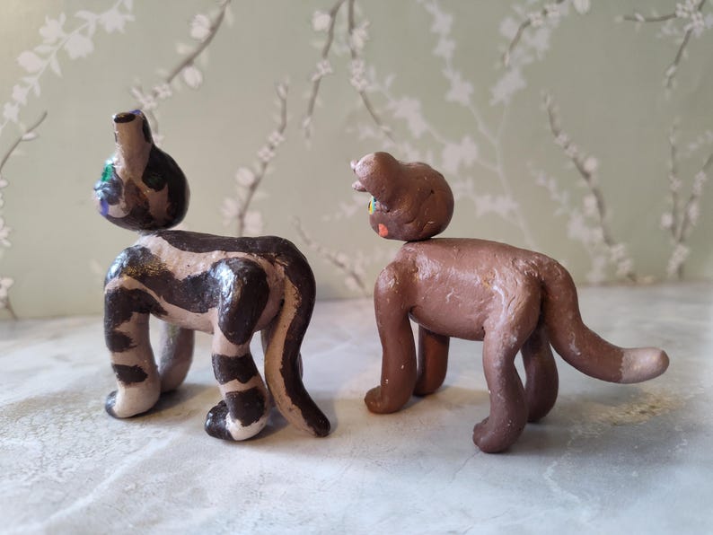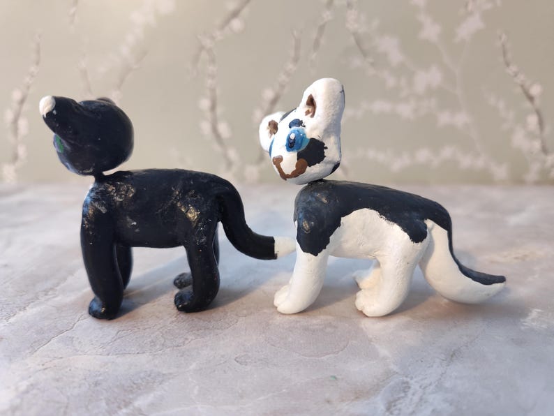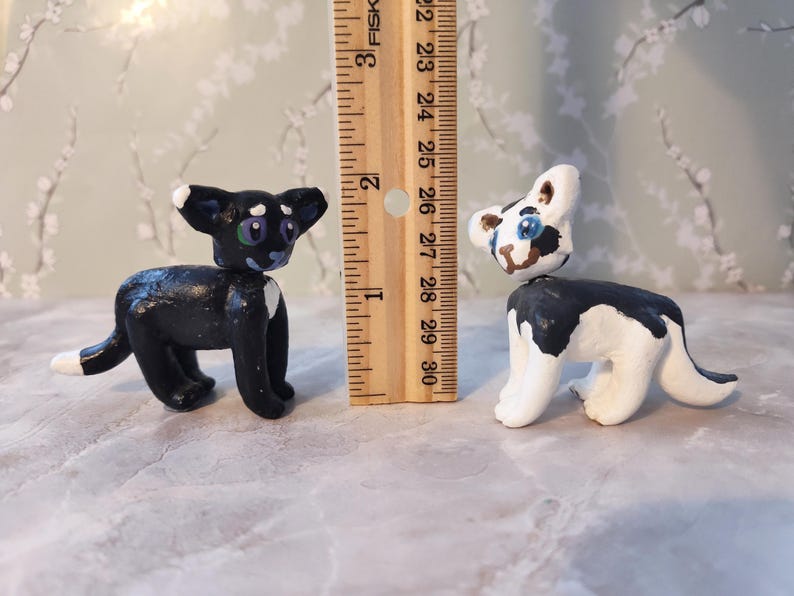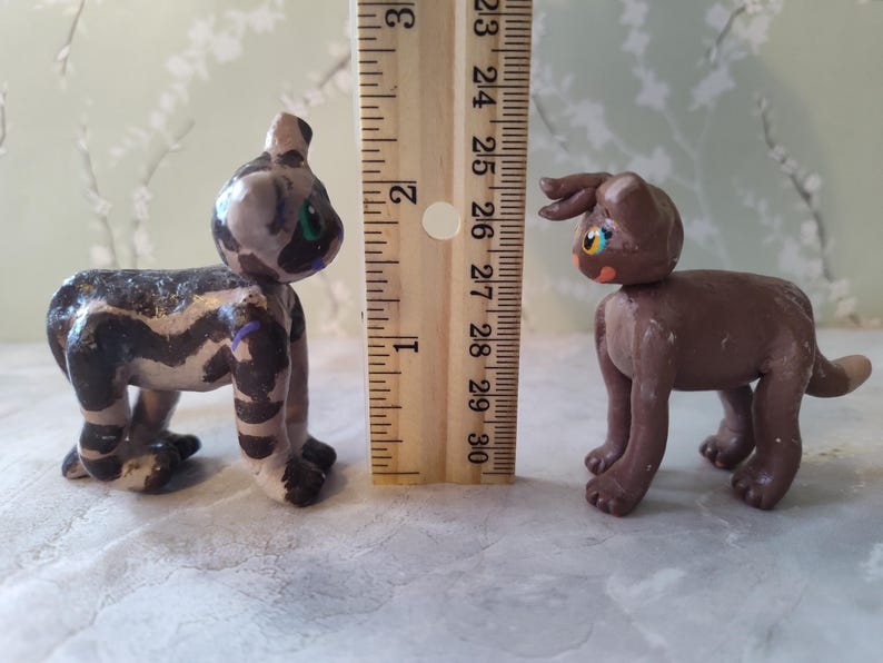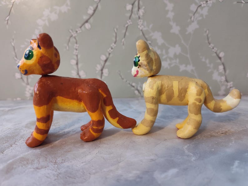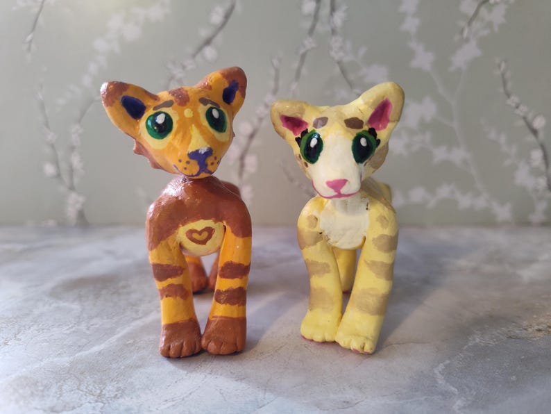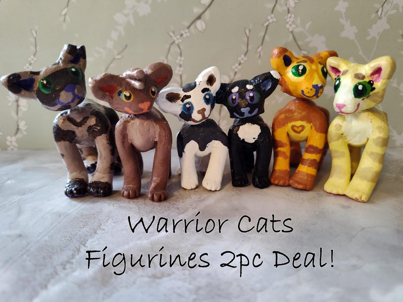 The characters sets available are: Ravenpaw and Barley, Sandstorm and Firestar, and Mousefur and Runningwind. You can choose your cats, and I will send them to you! They will be wrapped in bubble wrap to keep them safe, and you will get a couple extra goodies as well, usually stickers. If you would like it to be a gift, I can write a little note for the person - just let me know what you want written!
