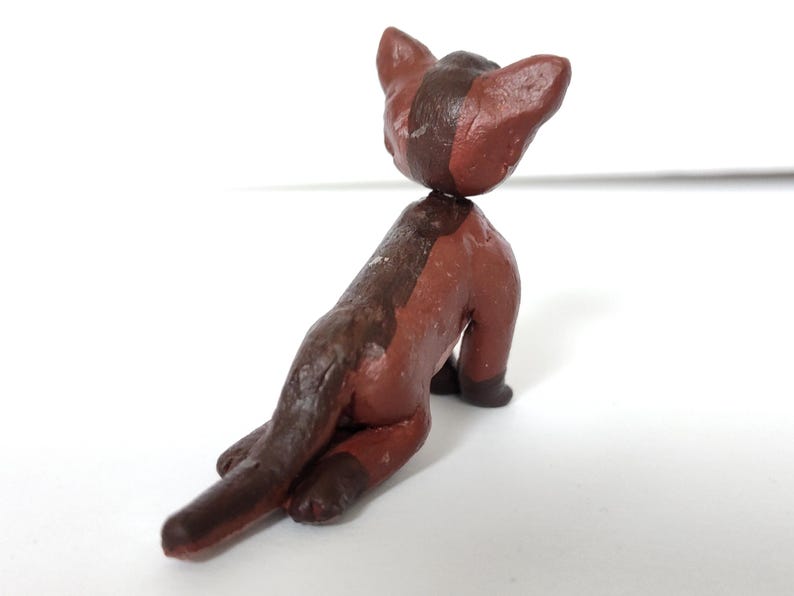 This cat is handmade with premium air dry clay, hand painted with acrylic paint, and coated with Mod-Podge. The eyes are coated with glossy mod-podge while the rest of the body is covered by matte mod-podge.
