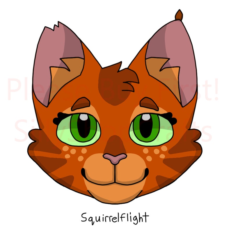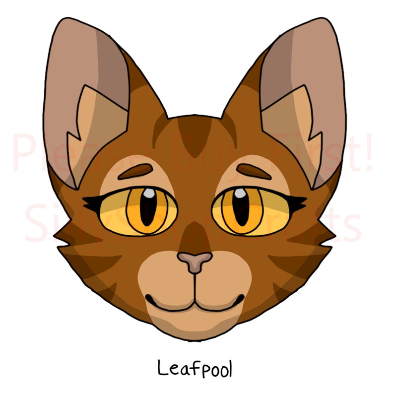 The characters are: Tawnypelt, Leafpool, Squirrelflight, Brambleclaw, Stormfur, Feathertail, Hawkfrost, Mothwing, and Crowfeather. They are all canon characters from Erin Hunter's book series, WARRIORS.