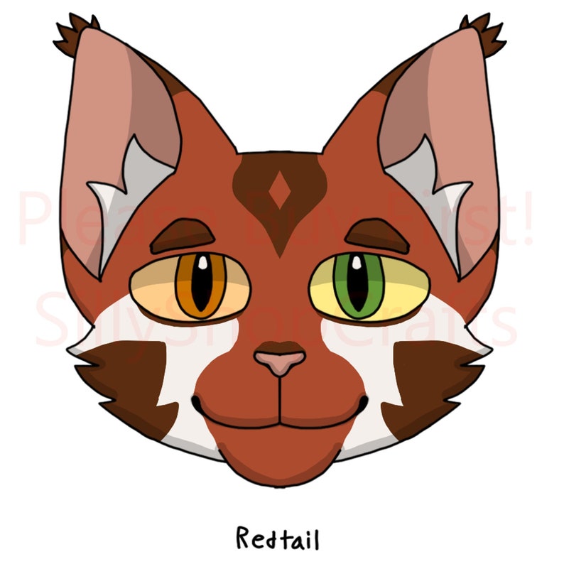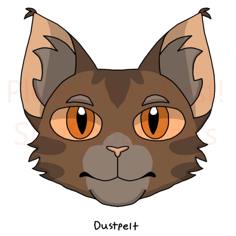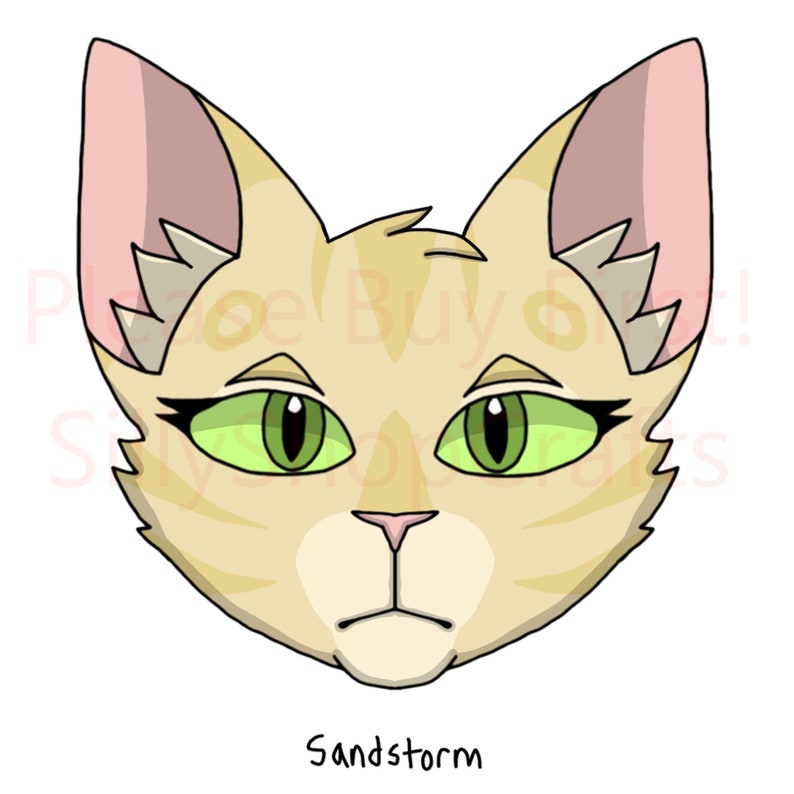 The characters are: Sandstorm, Dustpelt, Lionheart, Redtail, Cloudtail, Spottedleaf, Cinderpelt, Tallstar, and Scourge. They are all canon characters from Erin Hunter's book series, WARRIORS.