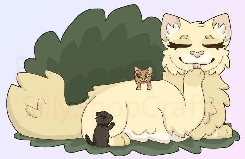 This sticker/image features "Daisy" and her kits "Toadkit" and "Rosekit" from the book series "WARRIORS."