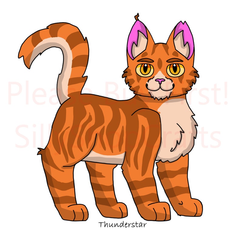 The characters are: Thunderstar, Bluestar, Firestar, Bramblestar. They are all canon characters from Erin Hunter's book series, WARRIORS.
