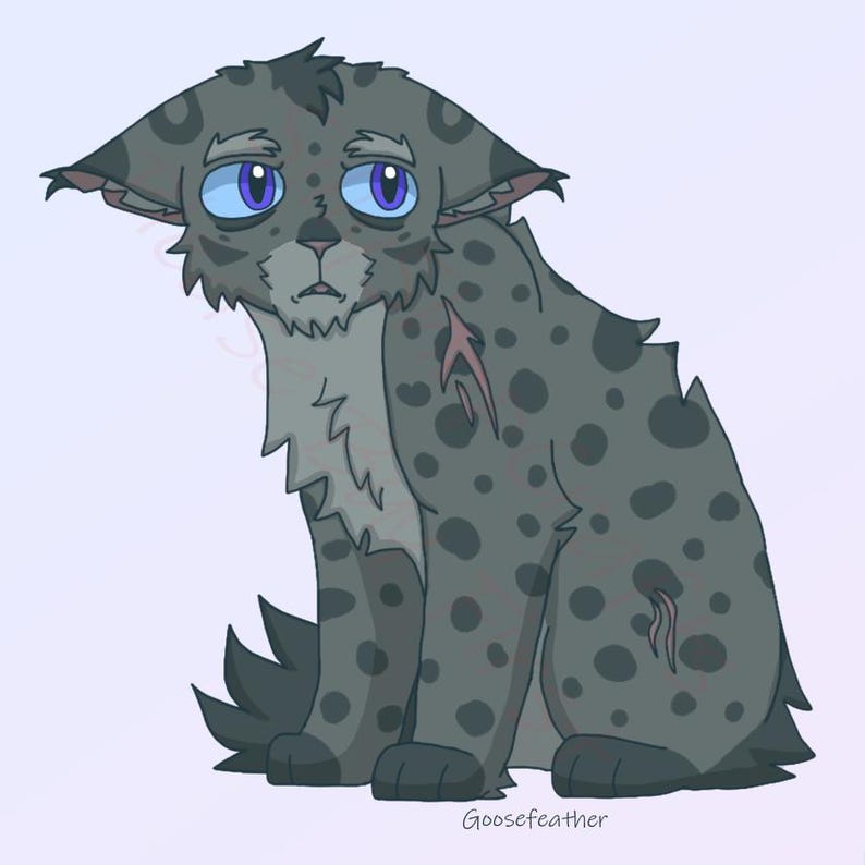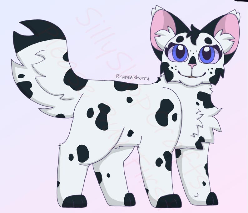 The characters are: Brambleberry, Frostdawn, Shadowsight, Mothwing, and Goosefeather. They are all canon characters from Erin Hunter's book series, WARRIORS.