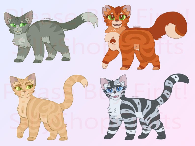 The characters are: Needletail, Squirrelflight, Sandstorm, Silverstream. They are all canon characters from Erin Hunter's book series, WARRIORS.
