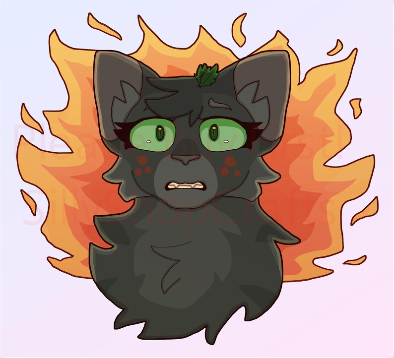 There are four versions of the image, two with Hollyleaf facing to the left and two with her facing to the right. Each version has a copy that does not have the characters name subtly added to the image and one that does, for a total of four files.