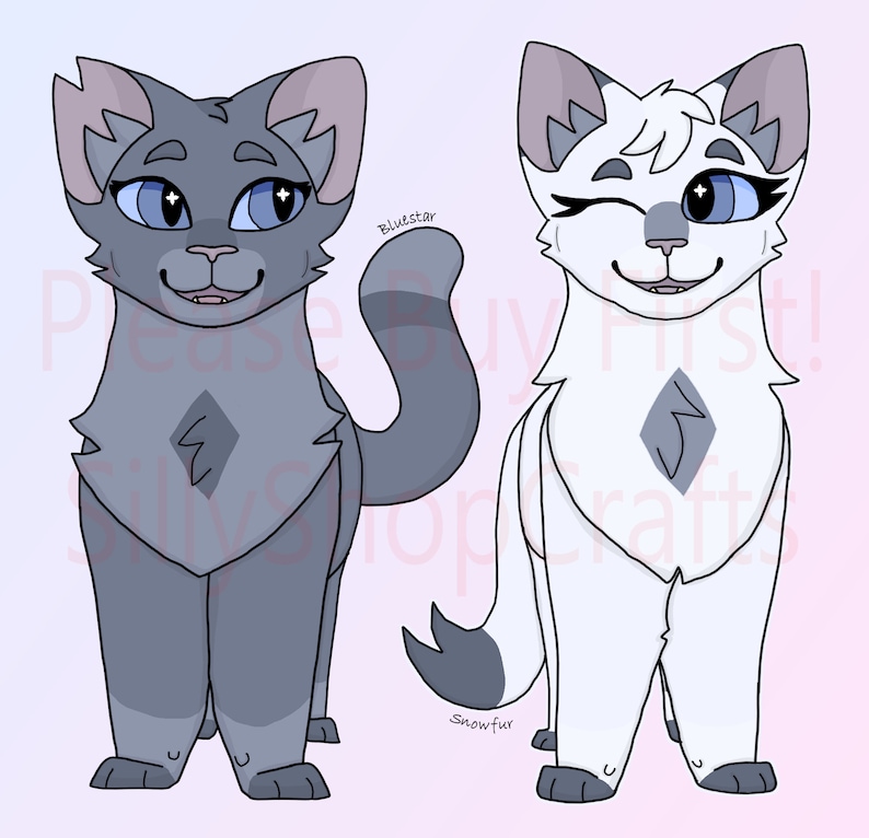These stickers/images feature "Bluestar" and "Snowfur" from the book series "WARRIORS."