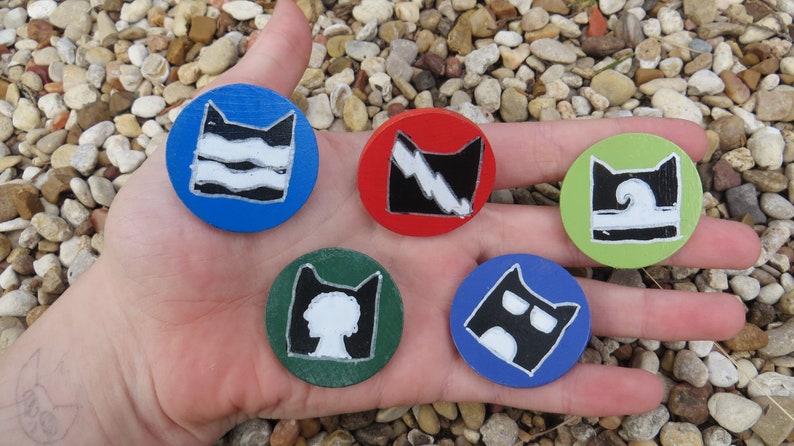 Pins with the logos of the Clans from the Warrior Cats book series.