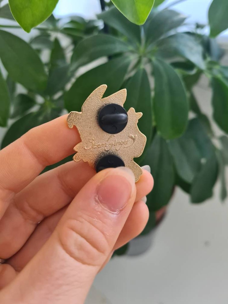 Each pin is roughly 1.5 inches in size gold plated and double clutched to make sure they hold on to your chosen display securely