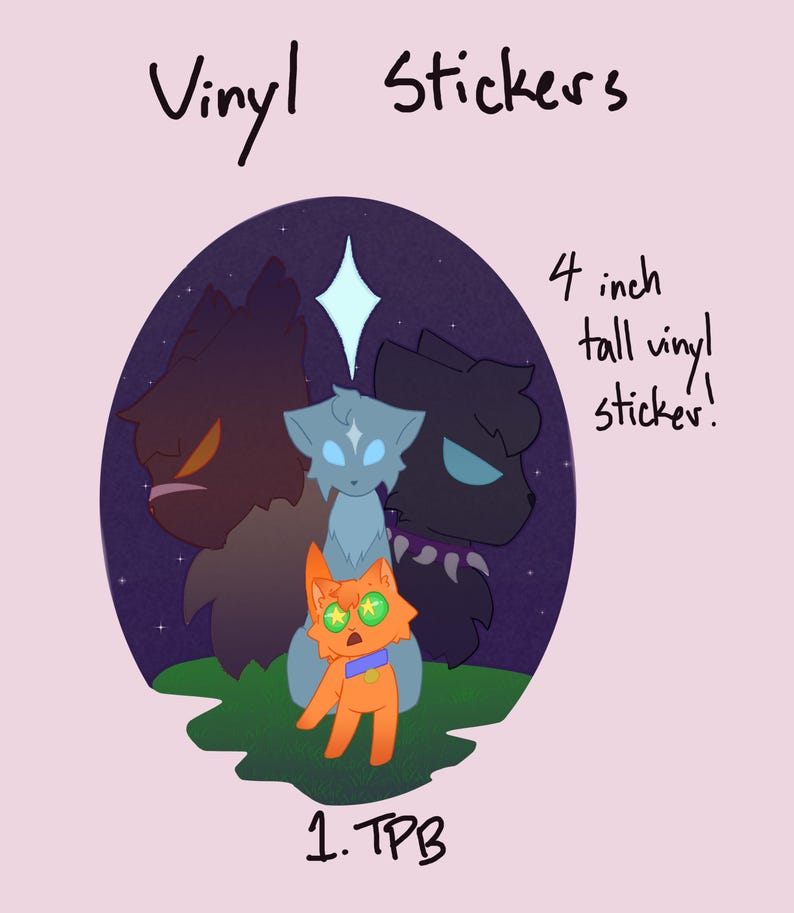 4 Inch Vinyl Stickers for the first 3 arcs of the Warriors series! More to come!