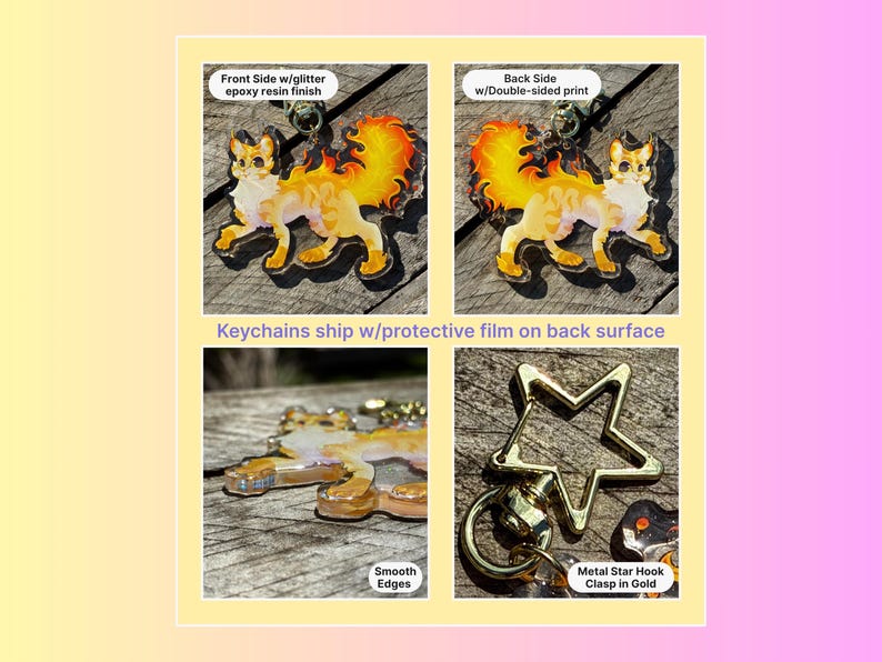 Acrylic Keychain, double sided with a front-side glitter epoxy finish. 3.5inch's.