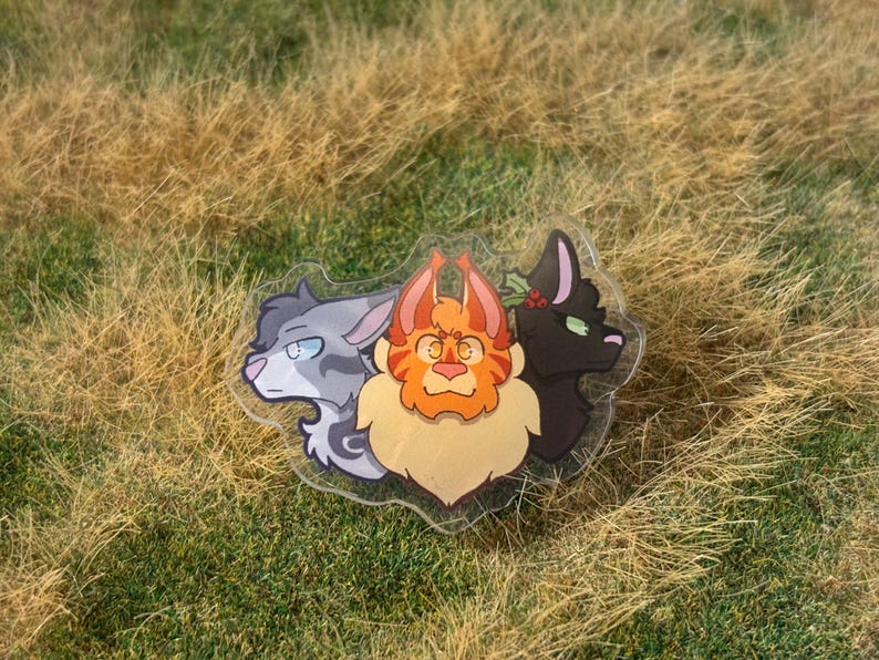 The protagonists of the Power of Three book, all on one pin! This pin is roughly 2 inches big and is fully acrylic, unlike my smaller wood pins.